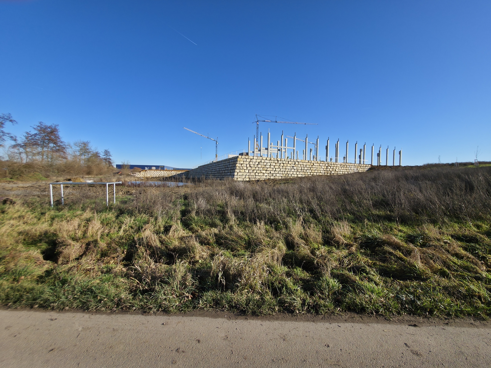 Hier sieht man den Bau einer Halle auf dem Wammsten Aker