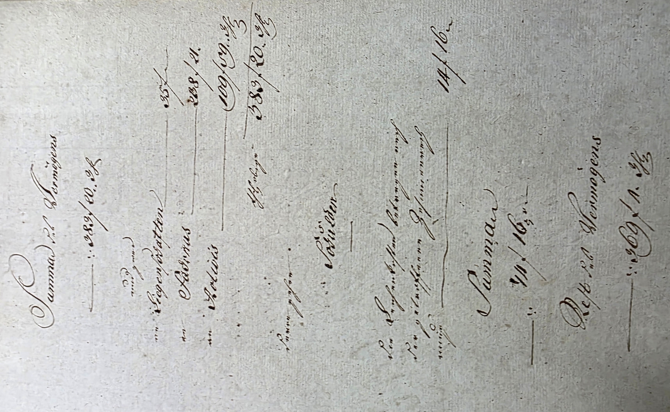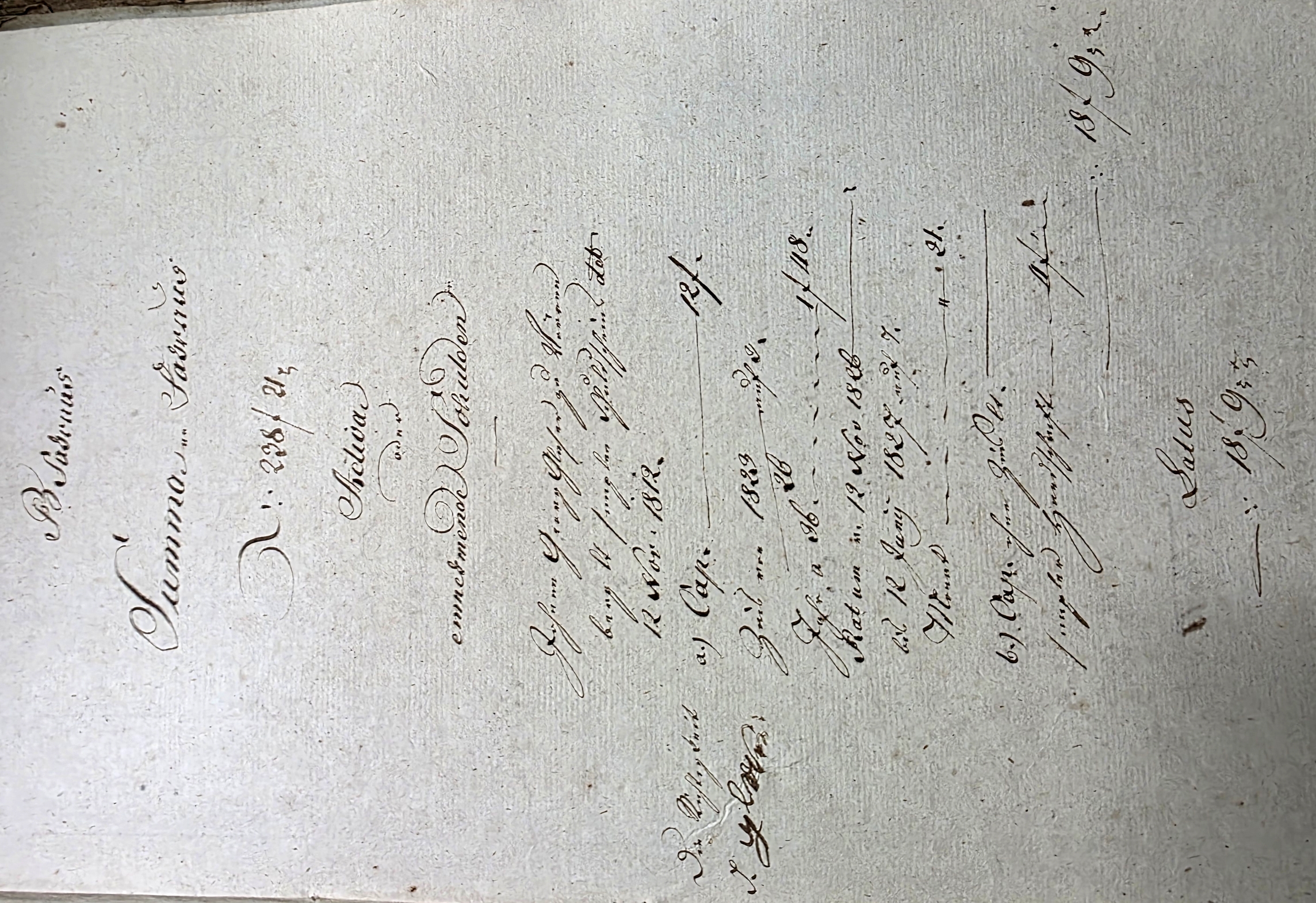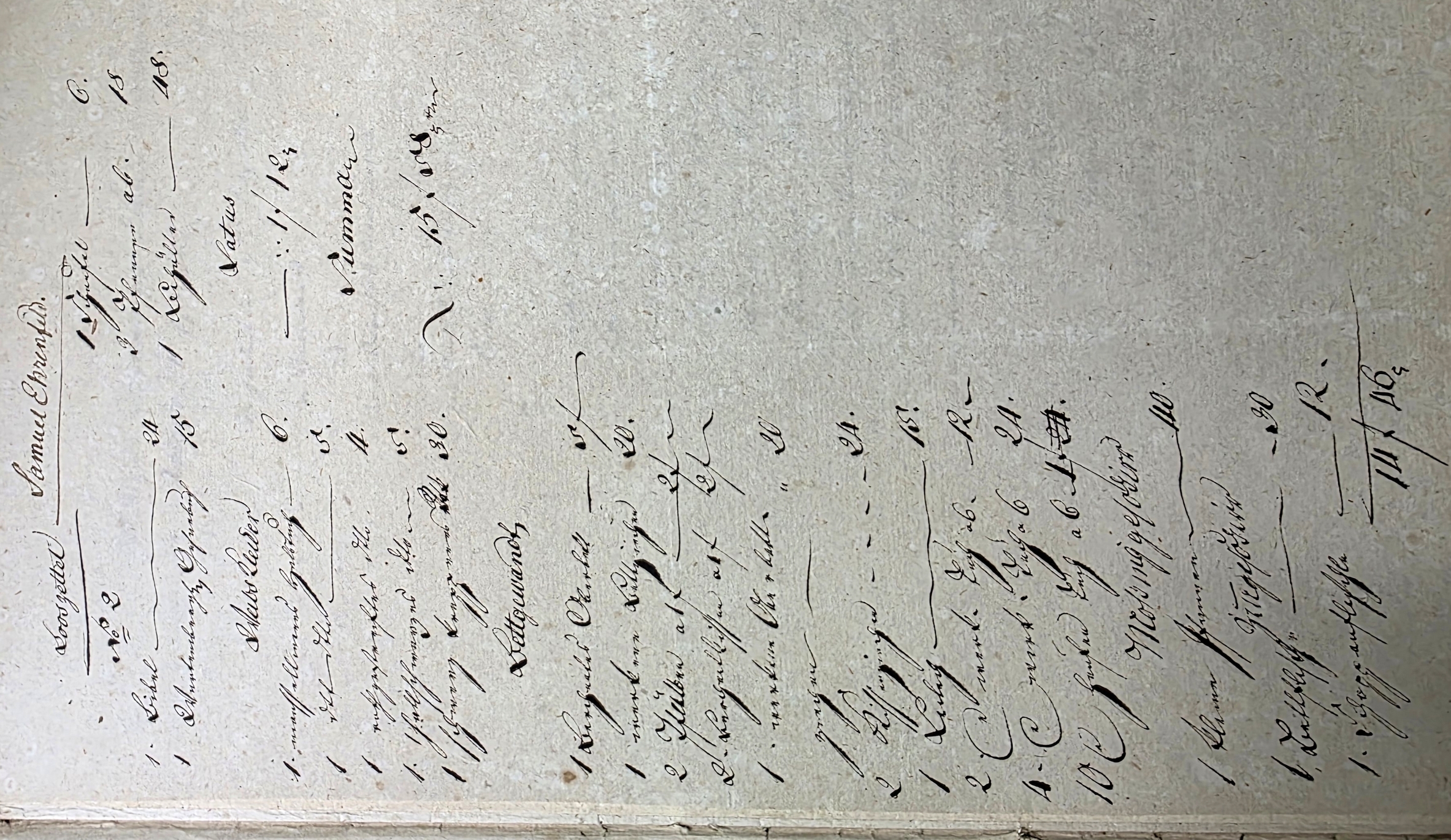 In diesem Verlaßenschafts Inventur und Realteilung vom 07.06.1827 findet sich das folgende: Die gesetzlichen Erben sind: Simon Ehrenfeld Bürgerl. Inwohner zu J....berg, Königlichem Oberamts Gerichts Künzelsau, Bruder der Verstorbenen dessen zwey leibliche Kinder a) Samuel Ehrenfeld Dienstknecht bey Schultheiß Käppler dahier 38 Jahre alt. b) Barbara Ehrenfeld dermalen im Dinsten bey Adlerwirth ... zu Niederstetten Oberamts Gerabronn, 36 Jahre alt. Erklären aber daß ihr Vater ihnen diese Verlassenschaft abgetretten haben und daß sie ohne Verzug deßfals eine .... Urkunde beibringen würden. Der Nachlass von Maria Dorothea Ehrenfeld bestand u.a. aus: A Liegenschaften 1) Häuser und Gebäude 1 kleines einstöckiges baufälliges Häuslein 35 fl. [Haus 10a] Nachtrag links: zur Hälfte Friedrich Samuel Ehrenfeld zur Hälfte Barbara Ehrenfeld B. Fahris baares Geld 205 fl. 49 x. Bücher - Bibel 24 x. - Predigtbuch 24 x. - Predigtbuch 24 x. - Württemb. Gesangbuch 15 x. - 10 alte Bücher 20 x. Weibs Kleider 1 fl. 32 x. Bettgewandt 17 fl. 30 x. Leinwandt 6 fl. 03 x. Mößinggeschirr 40 x. Kupfer Geschirr 1 fl. Zurgeschirr 1 fl. 18 x. Eisenbäckergeschirr 18 x. Schreinwerk 1 fl. 42 x. Gemeiner Hausrat 42 x. Summe Fahrniß 238 fl. 21 x. Activis 109 fl. 59 x. Schulden 14 fl. 16 x. Rest des Vermögens 369 fl. 4 x. "Nachdem unterm 5ten July d.J. einfür ... Schenkungs Urkunde beigebracht wurde, nach dieser aber Barbara Ehrenfeld - Fünfzig Gulden voraus als Entschädigung für Unterstützung ihrer Mutter in ihrer langwierigen Krankheit erhalten soll; So erhalten von der Verlaßenschaft 369 fl. 4 x. 1. Samuel Ehrenfeld 159 fl. 32 x. 2. Barbara Ehrenfeld 159 fl. 32 x. und 50 fl."