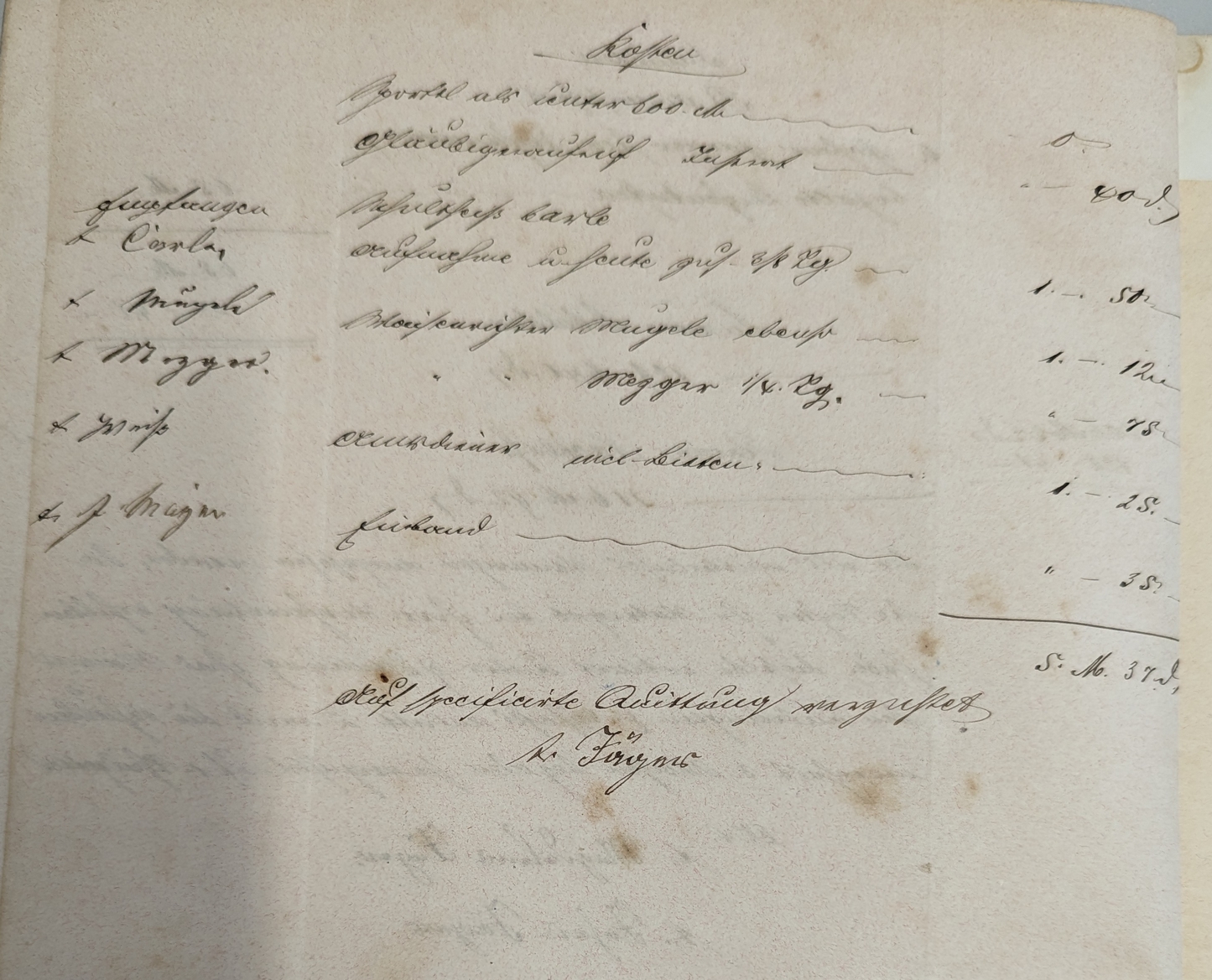 Im Verrenberger Gemeinderatsprotokoll vom 06.März 1857 findet sich folgendes: Heinrich Hüttinger Schumachermeister und Witwer von Füßbach welcher sich mit der Witwe des verstorbenen Sebastian Schanzenbach Magdalena geborene Kleber verehlichne Witt bittet um Aufnahmein das hiesige Gemeinde und Activbürgerrecht. Zur Begründung dieses Gesuchs legt Bittsteller einen von dem Gemeinderath Langensall gefertigten Geburtsbrief vor, wornach derselbe ein gutes Prädikat und an Vermögen und baarem 150f. an sonstiger Fahrniß mit Ausschluß der Kleider und Leibweiszeug 100f. Summa 250f. Zu diesem auch noch einen Leibgedung zu beziehen welcher nach Angabe des Gemeinderath Langensall jährlich zu 40f. Taxirt hat. Der Bürgerausschuß um seine Gutächterliche Äußerung befragt, erklärt: Wir geben nicht zu daß dem Bittsteller das hies. Bürgerrecht ertheilt werde weil das vorgeschriebene Vermögen von 150f. durch Art.20 des Bürg. Rechtsgesezes vom 4.Dec 1833 nicht hinreicht und ...... auch nicht schriftlich nachgewiesen habe daß der angegebene Leibgeding gesichert sei. Wenn er also noch schriftlich von dem Amte beglaubigt nachweißt daß das Leibgeding geführet und das angegebene Vermögen unangefochten ....... erfolgt, so würde dem Bittsteller seine Bitte gewährt werden. Der Gemeinderath ist mit der Ansicht des Bürgerausschußes einverstanden und faßt darüber Beschluß Wenn Bittsteller die vom Bürgerausschuß verlangte Nachweise liefert ihm sein Vorhaben zu gewehren im andern Fall aber seinem Gesuch nicht statt gegeben werde was man dem Bittsteller zu eröffnen bittet |