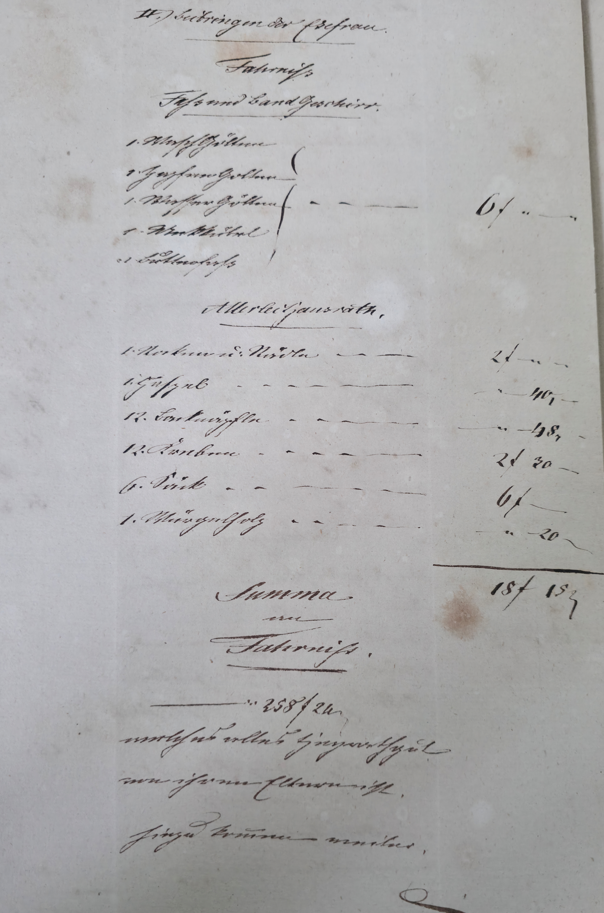 | Beibringensinventur Anton Hörger - 1837 | ||||||||||||||||