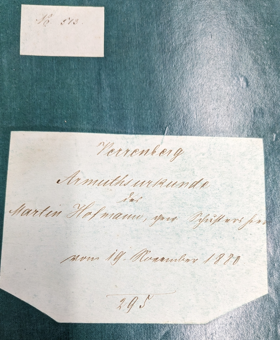 | Armutsurkunde des Martin Hofmann - 1880 | ||||||