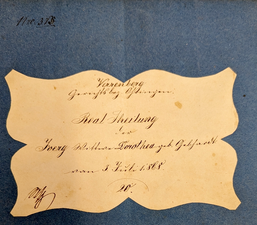 | Realteilung der Witwe des Michael Jörg - 1868 | ||||||||||||||||||||||||||||||||||