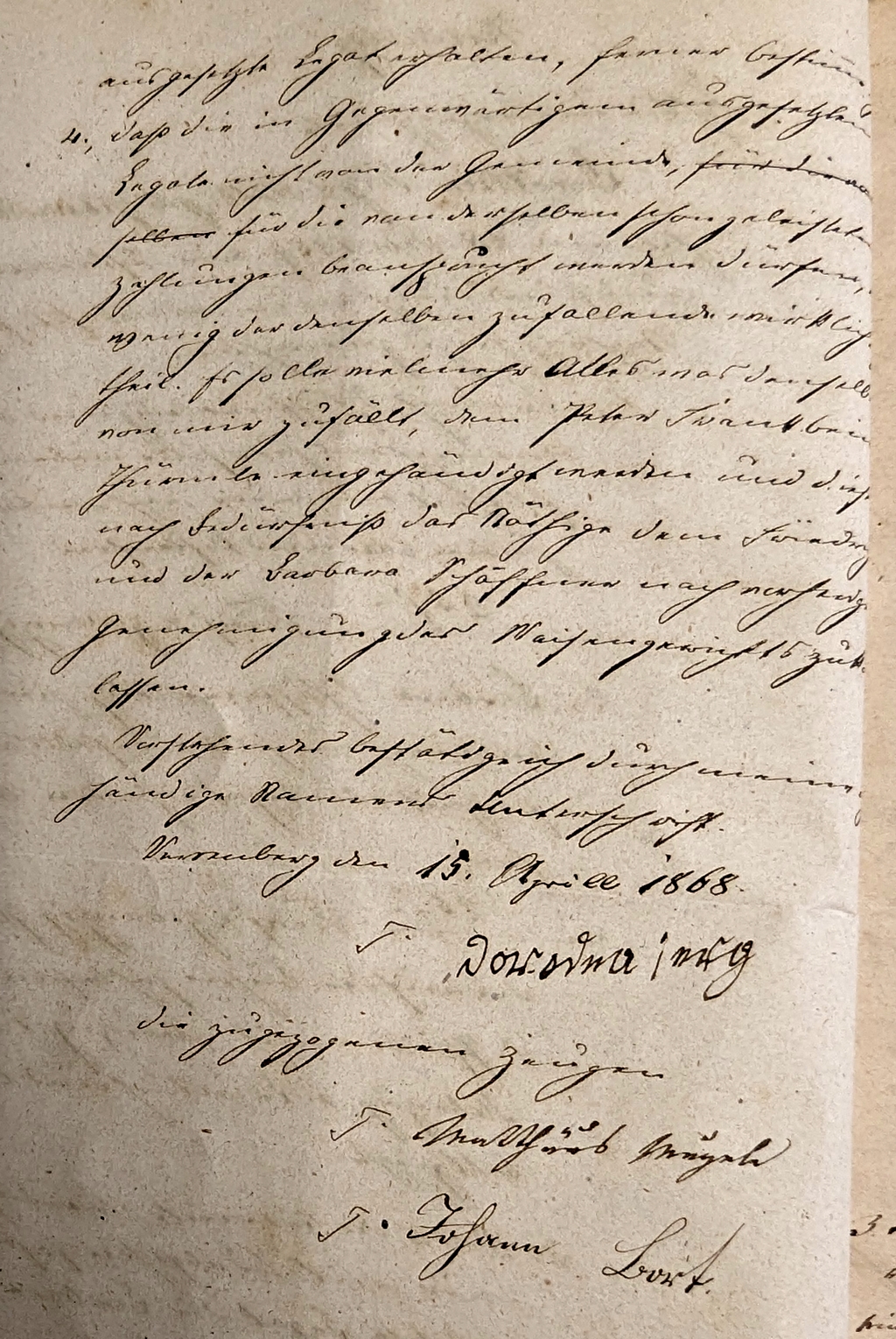 Georg Michael Jörg erwirbt das aktive Bürgerrecht durch Heirat - 1849 In der Liste zum aktiven Bürgerrecht im Ortsarchiv findet sich folgendes: Art der Erwerbung des Bürgerrechts: Aufnahme d. 20.Februar 1849 Ge R Prot II 113 Art und Zeit des Eintritts in das aktive Bürgerrecht: Verheurathung im Oktober 1849 |