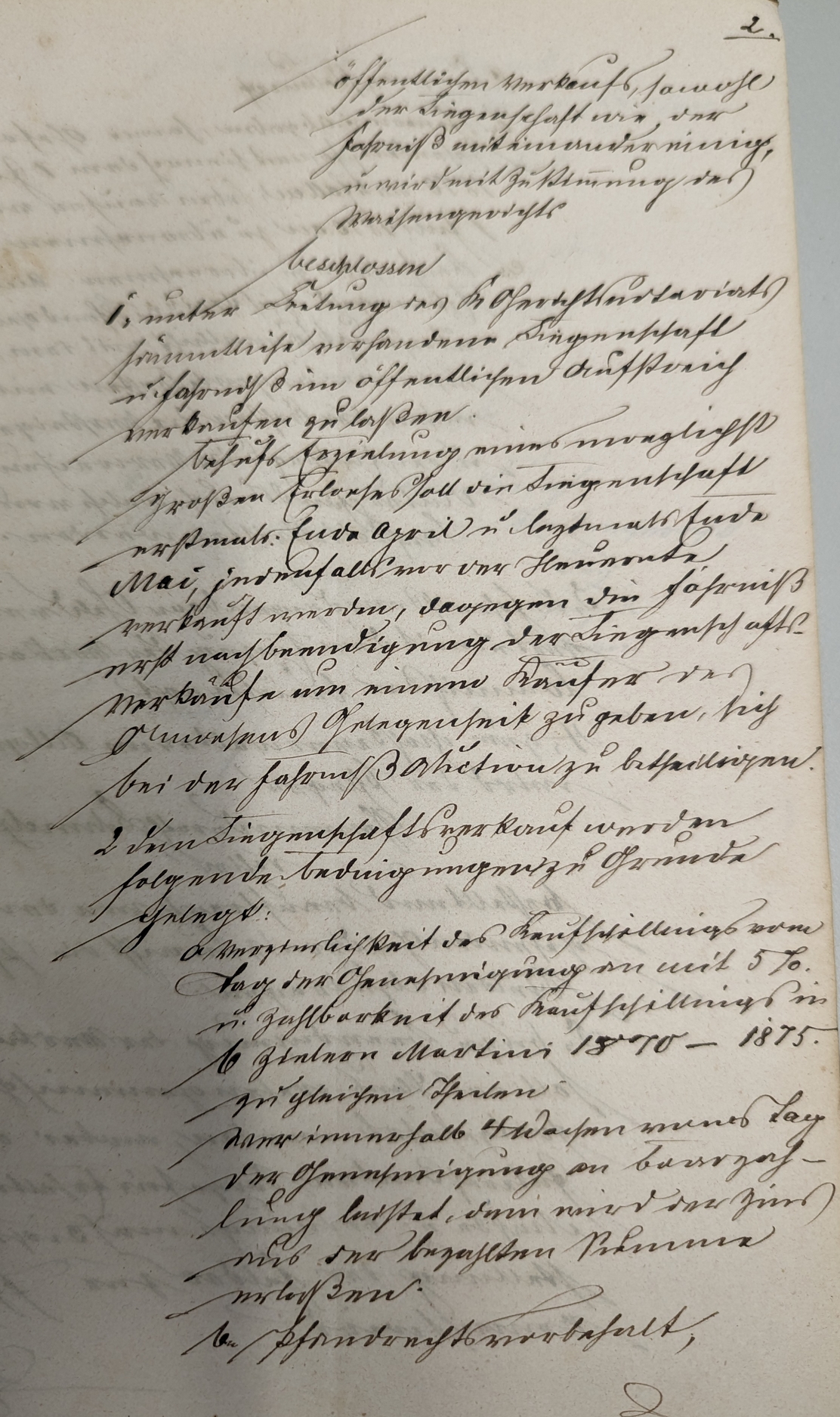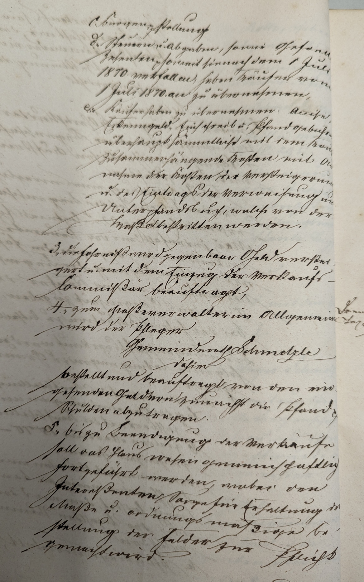 | Im "Schultheißen-Amts Protokoll" findet sich am 16.März 1859 folgendes: Es erschien Carl Klaiber von hier und klagt an er habe neben Christian Görtz von hier einen Aker im Langenfeld welcher mit einer bedeutenden Hohen Grasrain an der grenße zwischen mir und Görtz umgeben an diesem Rain hatte mit Görtz so viel Erde weggenommen daß die grenzsteine beinahe umfallen auch hat er nicht nur biß zur Grenße gemacht sondern dieselbe noch überschritten ich bitte daher Gemeinderäthliche oder von dem Felduntergang zu nehmen die Einsicht nehmen lassen zu wollen und nach Erfund dessen in der Sache zu entscheiden Görtz wurde über vorstehendes verständigt gibt an es ist unrichtig daß ich die Grenße durch Erdarbeiten überschritten ich habe nur biß an die grenße die Erde weggeschaft, und wenn der Kläger von der Thatsache Einsicht nehmen lassen will habe ich nichts darüber zu erinnern und bin desgleichen auch mit einverstanden Auf obige Erklärung des Klägers so wie des Beklagten hat man den Felduntergänger Anton Hörger und Gemeinderath Käppler beauftragt sich an Ort und Stelle über welche die Klage erhoben werden ist zu begeben und Pflichtgetreu Einsicht von der Sache zu nehmen, und nach Erfund dessen die Erklärung hiemit zu Protokoll zu geben. Nach genommener Einsicht erscheinen die beiden Beauftragten und geben an. Wir haben die Sache eingesehen und haben erfunden daß Görtz gegen Klaiber unrecht gehandelt hat, Klaiber hat einen sehr hohen Grasrain an seinem Aker und da hat Görtz an der Grenße einen Graben ausgemacht und so weit die Erde weggeschafft daß die Marksteine Theilweiße für jezt schon zu Grunde gehen was ganz gesezwidrig ist, Nach der gesezlichen FeldOrdnung gehört Görtz wegen dem zu Grunde gehenden Marksteinen schon gestraft weiter wissen wir nichts zu erinnern Nach obiger Angabe der Beauftragten Commission wurde der Kl. s.w. der Beklagte zur I.ten mündlichen Verhandlung vorgeladen worauf beide in Persohn erschienen sind. Dem Beklagten wurde erörtert daß er die Grenße überschritten und die Marksteine theilweise beinahme zu Grunde zugerichtet habe. Auf dieses Vergehen sieht man sich daher veranlaßt den Beklagten in eine Warnungsstrafe mit 1f. zu verfällen unter Belehrung des Recoursrechts. Beklagter erkennt die Strafe an und Verzichtet auf den Recours Nachtag links Beisatz Kläger verzichtet auf Schadenersatz wenn der Beklagte die Comissionskosten mit 36x ersezt, letztere erklärt hiemit daß er die Unkosten welche Kläger vorgelegt habe baar ersezen wolle |