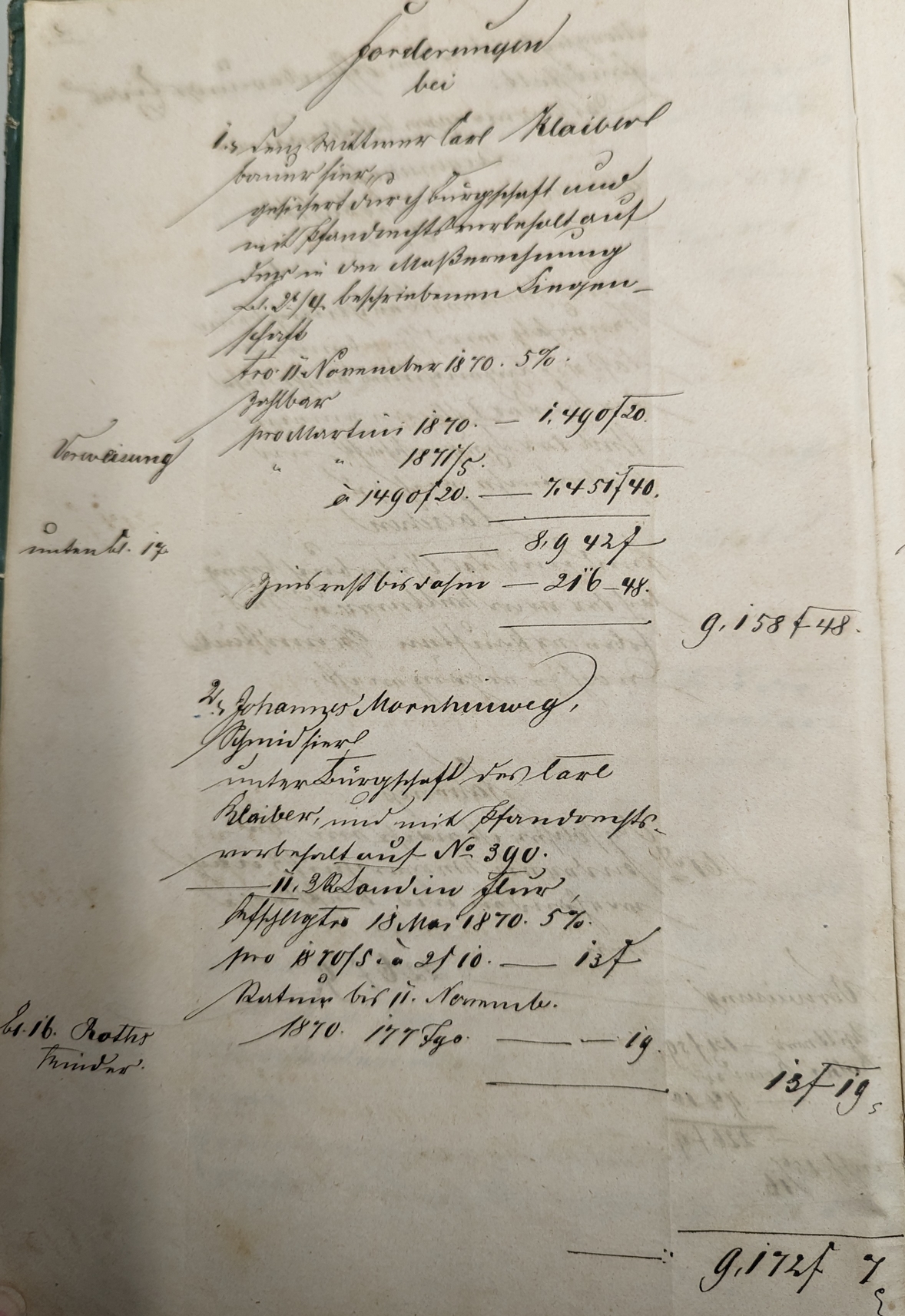 17.März 1870 Wert der Liegenschaften 10.841 fl.