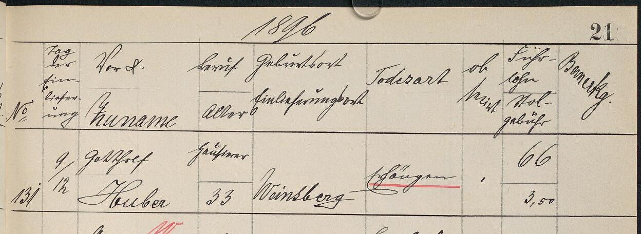 Im Leichenbuch des des Anatomischen Instituts in Tübingen wurde der Eingang des Leichnames von Gotthilf Huber für den 09.12.1896 verzeichnet. Also zwei Tage nach seinem Selbstmord. Der Fuhrlohn wird mit 66 Mark angegeben. ![]() Aufgrund der damaligen Gesetzeslage in Württemberg mussten die Leichnahme von Selbstmördern der Universität Tübingen für Lehr- und Forschungszwecke bereitgestellt werden. Das Institut musste "nach Ende der Nutzung der Leichnahme" für die Bestattung aufkommen. Das Gräberfeld X (https://graeberfeldx.de/) des Tübinger Stadtfriedhofs diente dem Anatomischen Institut von 1849 bis 1963 als Begräbnisstätte. |
