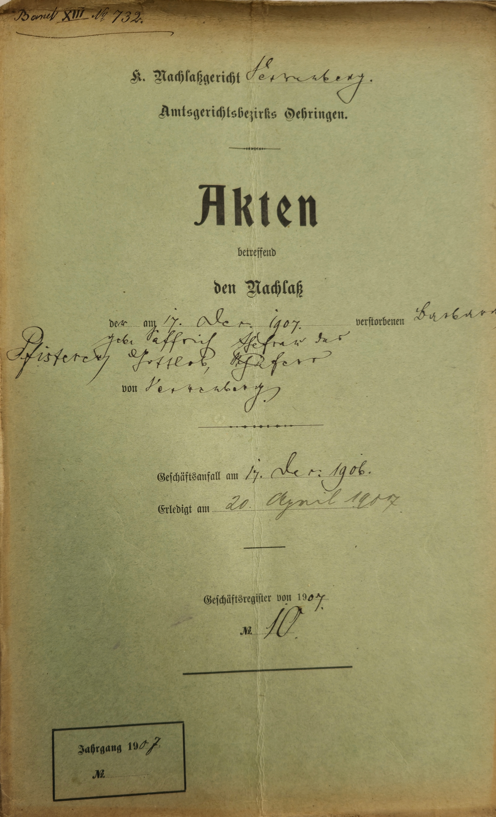 | Nachlassakten Gottlob Pfisterer - 1906-1907 | |||||||