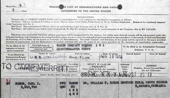 (4) Passagierliste von Brest in Frankreich in die USA im Jahr 1919.