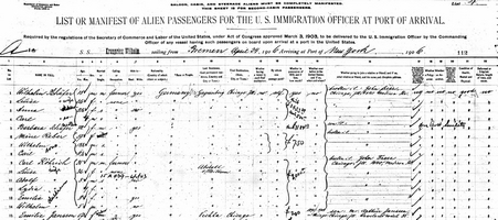 (1) In dieser Liste wurden ankommende Passagiere eingetragen, die am 24.04.1906 auf dem Schiff "Kronprinz Wilhelm" von Bremend kommend in New York angekommen sind.