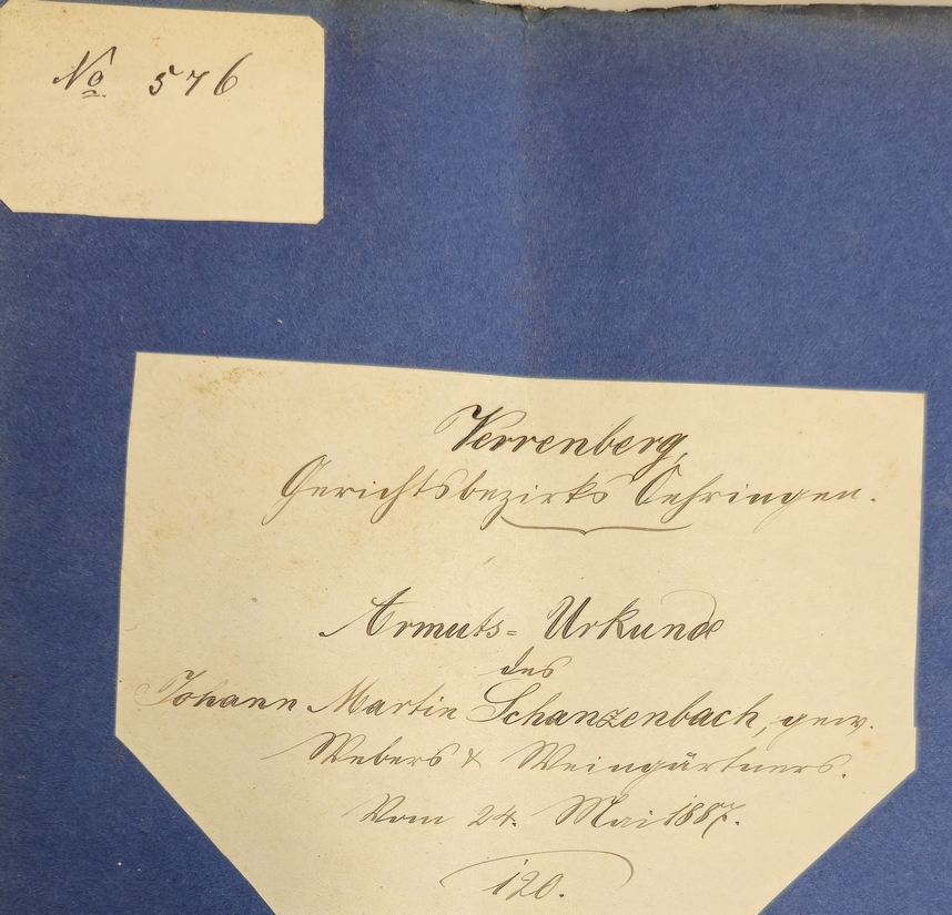 Im Verrenberger Gemeinderatsprotokoll vom 07.Dezember 1876 findet sich folgendes: Zu der heute stattgefundenen Vermögensuntersuchung des Johann Schanzenbach Weber hier wurde vom GeRath als Güterpfleger vorgeschlagen und ernannt Michael Bort Bauer hier |