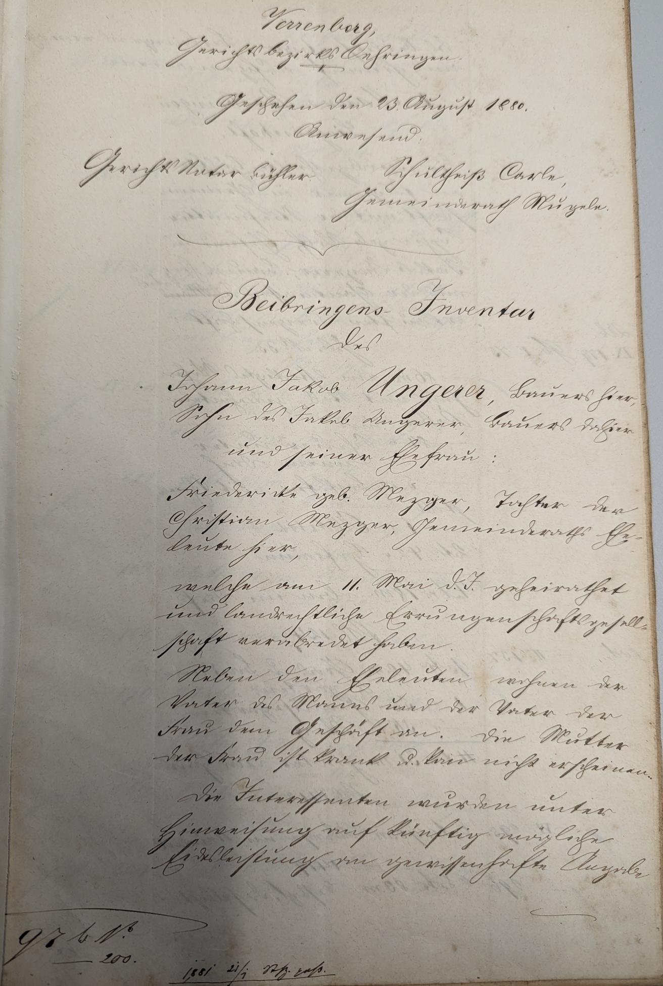 | Beibringinventur Johann Jakob Ungerer - 1880 | |||||||||||||||||||||