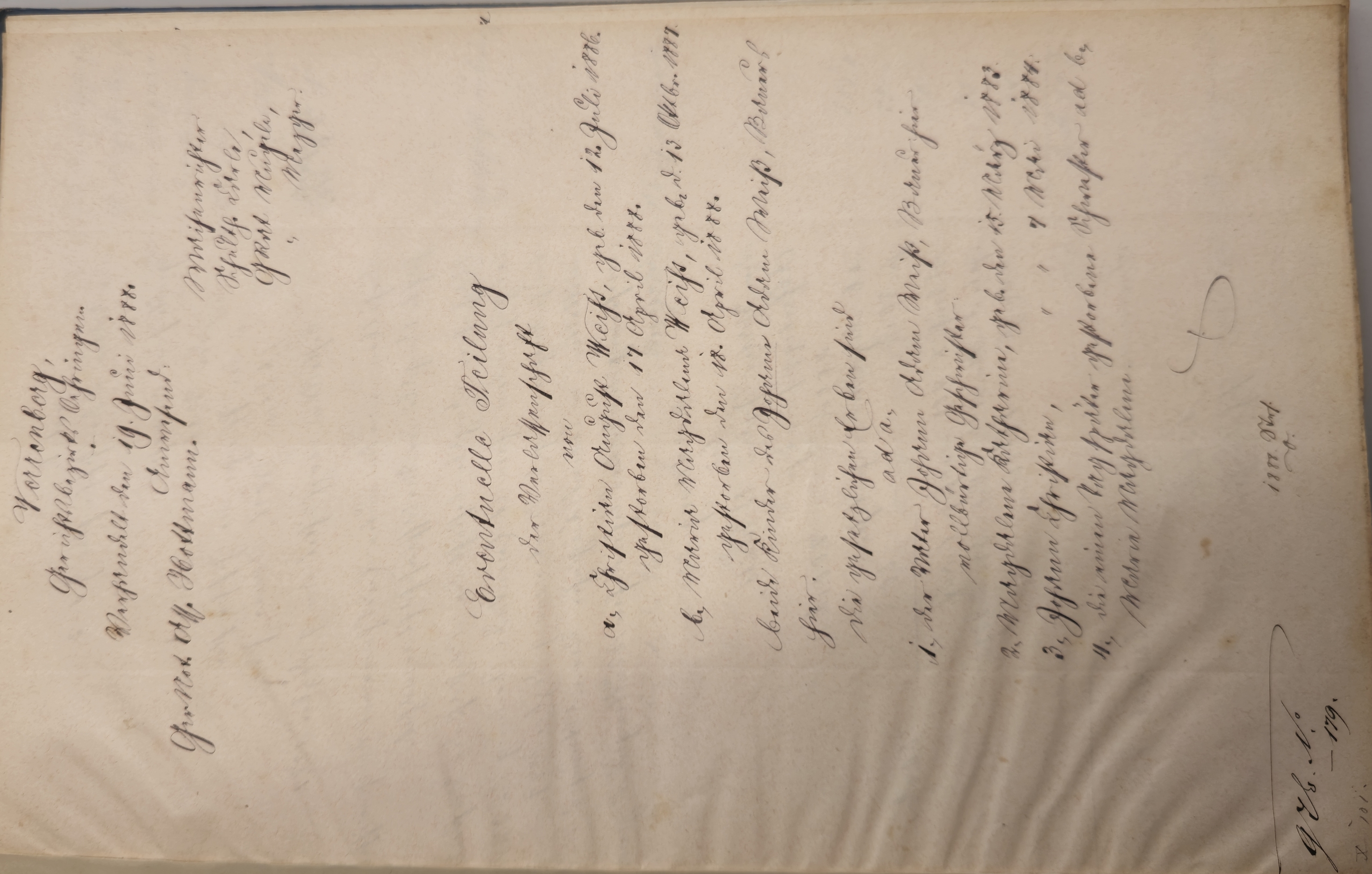 In dieser Eventualteilung vom 19.06.1888 findet sich das folgende: Nach dem Tod der beidne Kinder des Johann Adam Weiß: