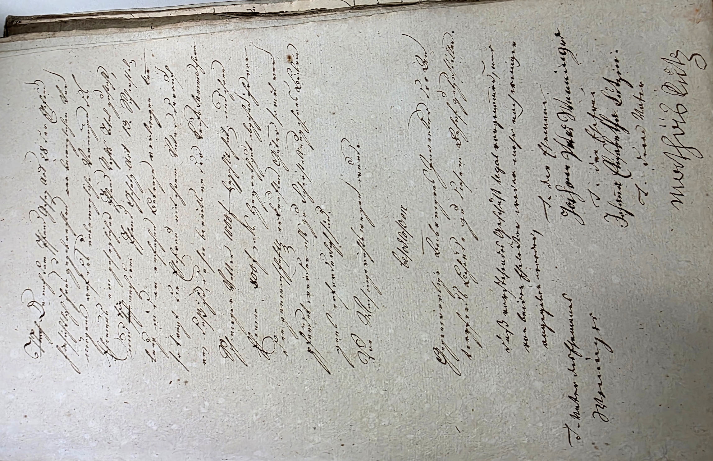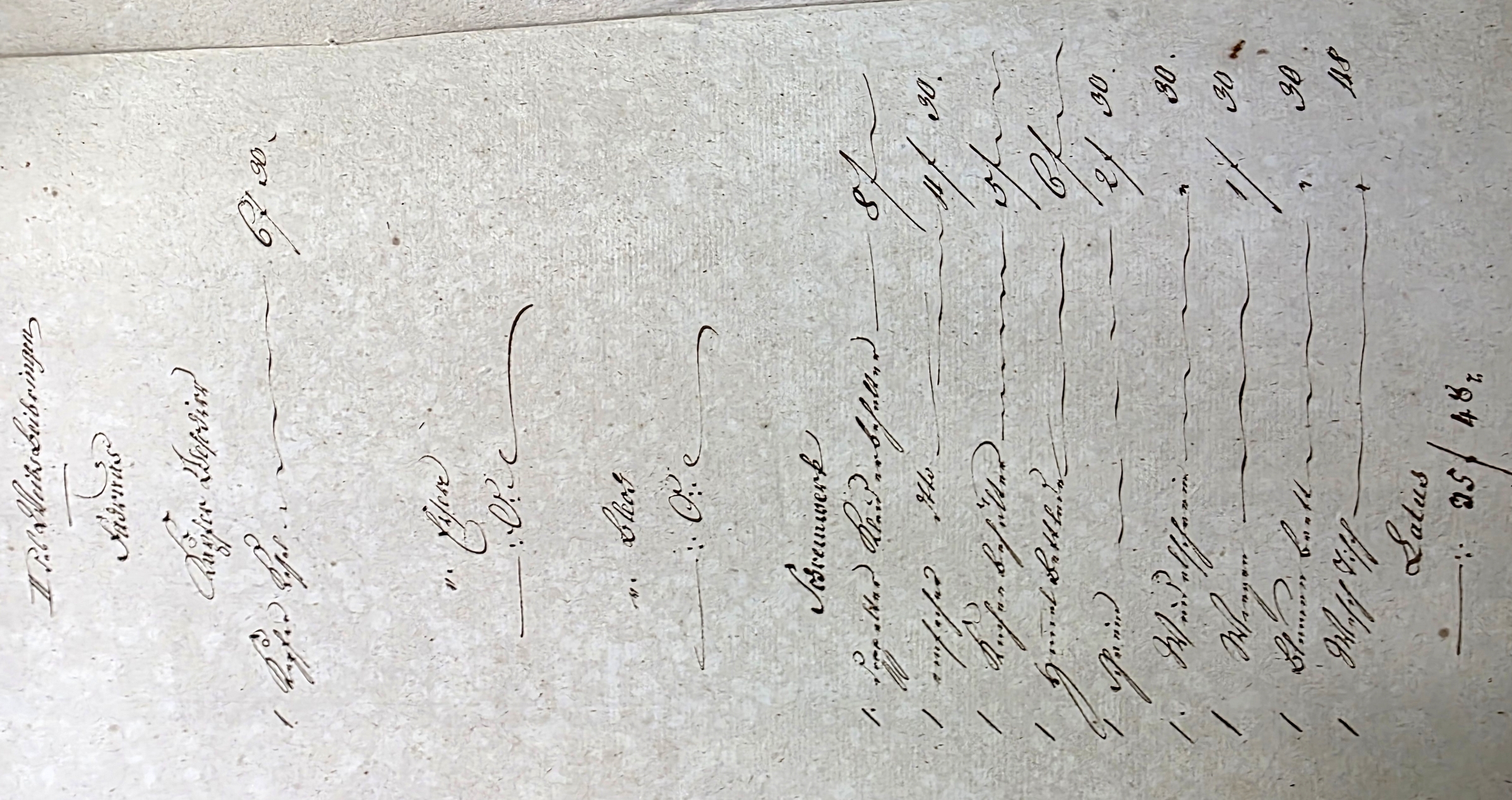 Im Verrenberger Gemeinderatsprotokoll vom 18.Dezember 1829 liest sich das so: Es erschien Friedrich Braun von Dimbach und brachte vor dem Gemeinte Rath glagbahr vor, daß im der Peter Wenninger an Seinem Schäfer Rey Kauf Schilling 4f. In abzug bringen wolle weil er den Michael Zent in Buchern zu viel bezahlt hat da kamen sie mit ein ander über ein und da gab der Joseph Wenninger dem Friedrich Braun 1f. die Verhandlung Begräftigen bede mit ihrer eigen händigen Unterschriften. |