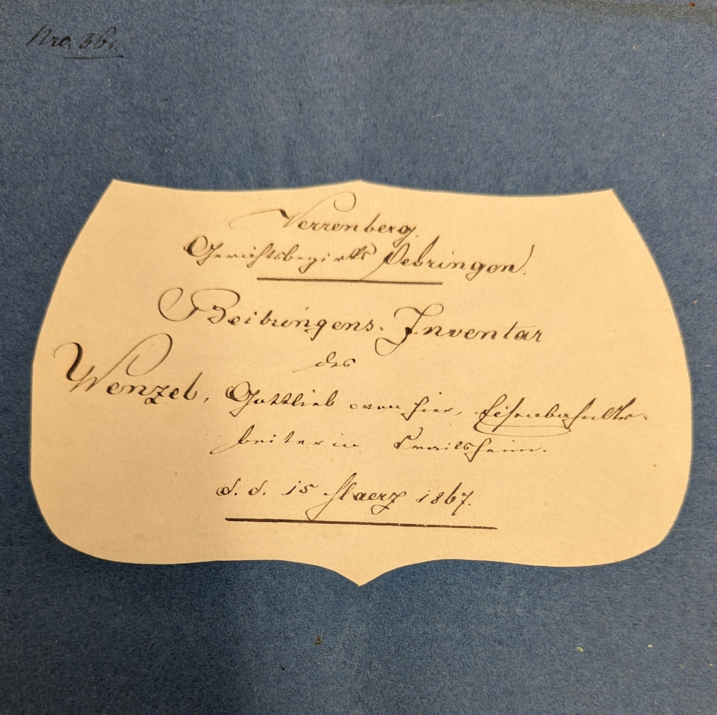 Ortsarchiv Verrenberg: A 336 Nr. 361 Beibringsinventur Gottlieb Wenzel 1867
