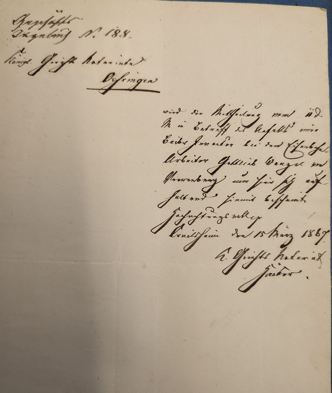 In dem Brief aus Crailsheim ist erkennbar, dass er dem Bau der Eisenbahn gefolgt war und 1869 in Crailsheim lebte.