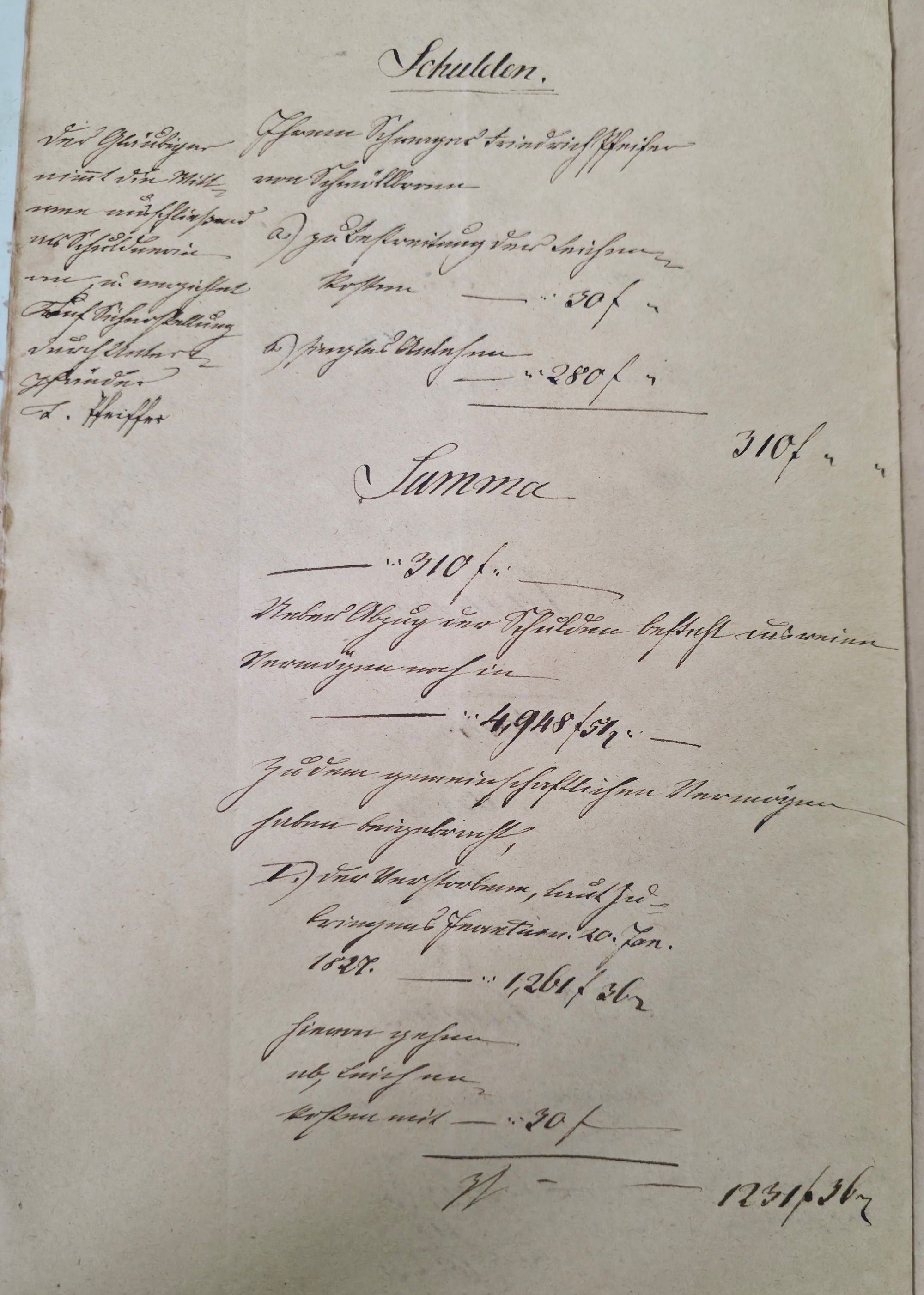 "Ueber Abzug der Schulden besteht ... Vermögen noch in 4.948 fl. 51 x.
