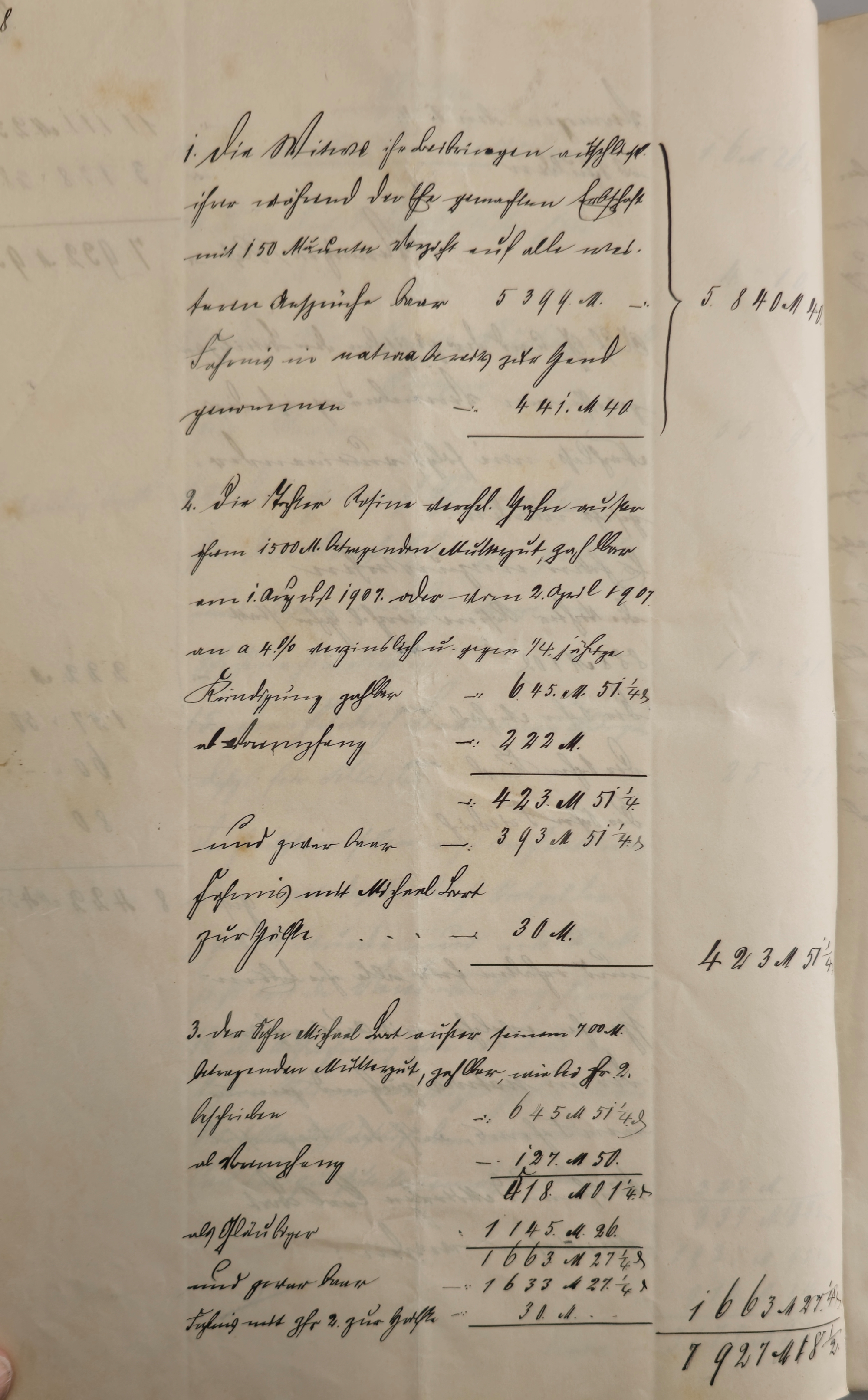 In dieser Beibringinventur vom 24.02.1869 findet sich das folgende: Johann Michael Peter Bort hat zusammen mit seiner Ehefrau von seinem natürlichen und adoptiv Vater dessen gesamte Liegenschaft um 8.000 fl. erkauft. Da diese Erwerbung "ehelich gemeinschaftlich sind": Liegenschaft 0 fl. Fahrniß Baar Geld 800 fl. sonstige Fahrniß 188 fl. 48 x. ... Summe Ehemnn Beibringen 4.688 fl. 48 x. Darunter H Gut u Aussteuer, so einer ... 3.609 fl. 42x. Eigen 1.079 fl. 6 x. Ehefrau Beibringen Liegenschaft 0 fl.. Fahrniß Baar Geld: "Von dem Vatr hat die Ehefrau auf ... von ihrem mütterlich Vermögen und Heurathgut erhalten 2.000 fl." Fahrniß 403 fl. 48 x. Summe Beibringen der Ehefrau 2.403 fl. 48 x.