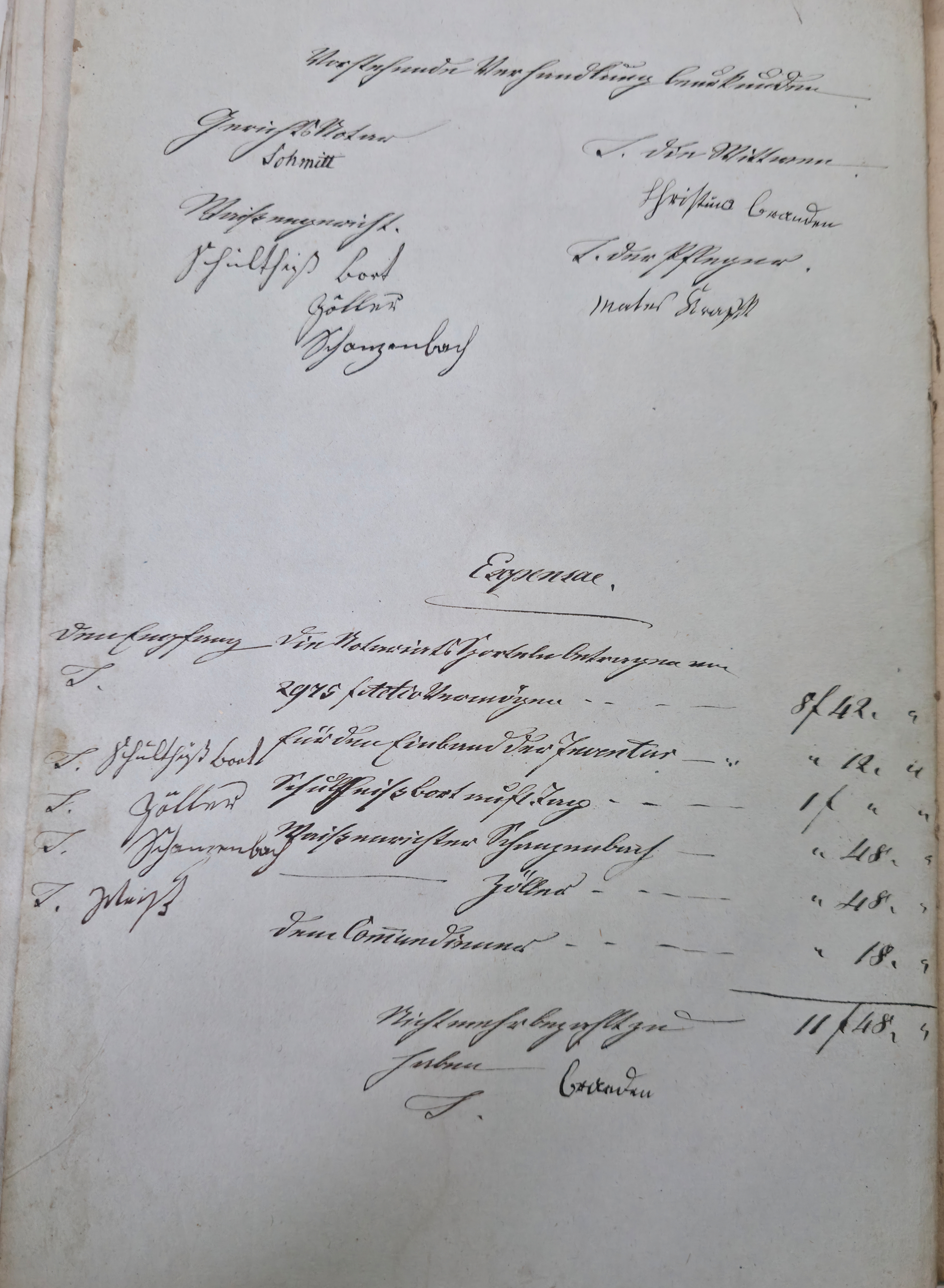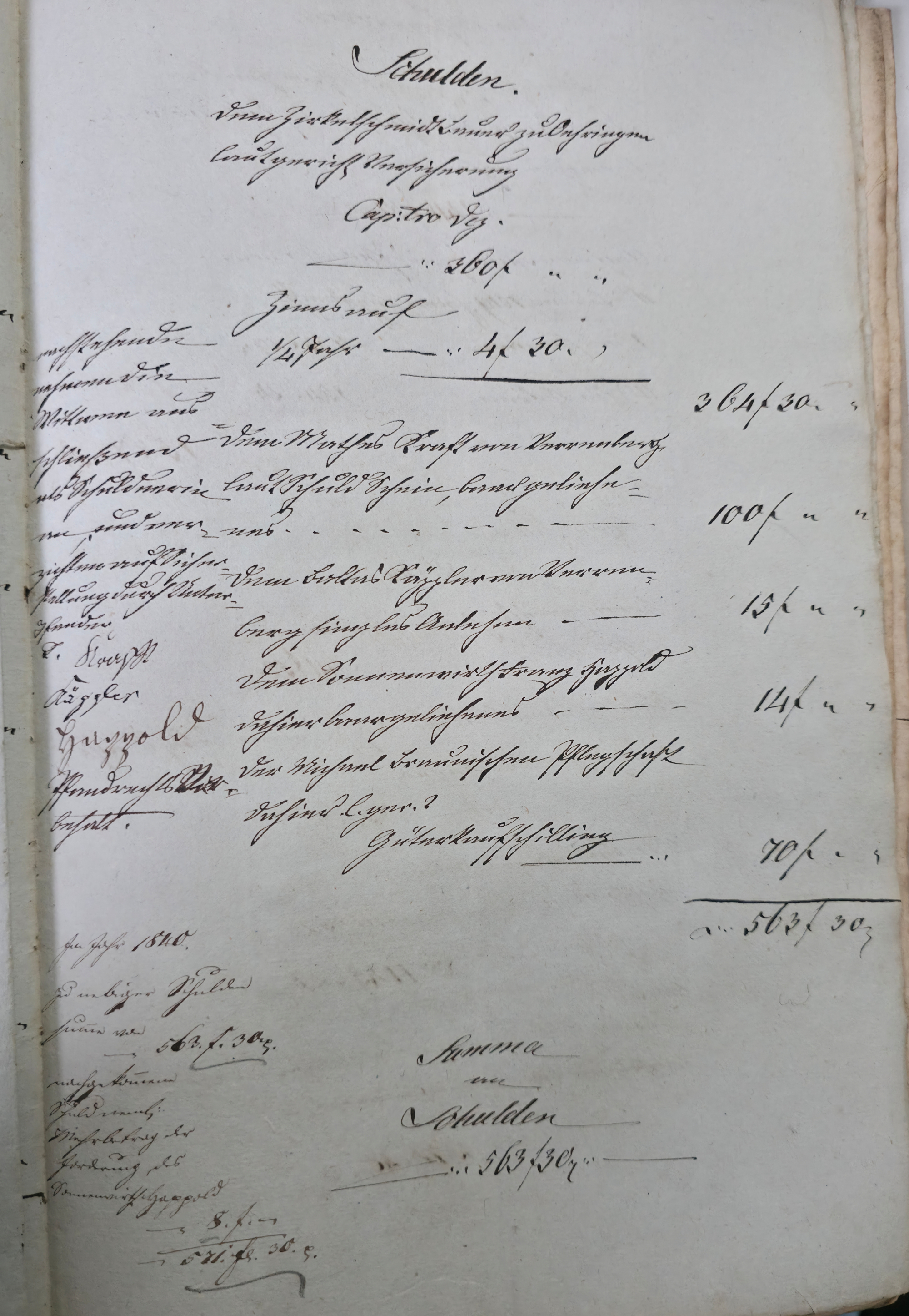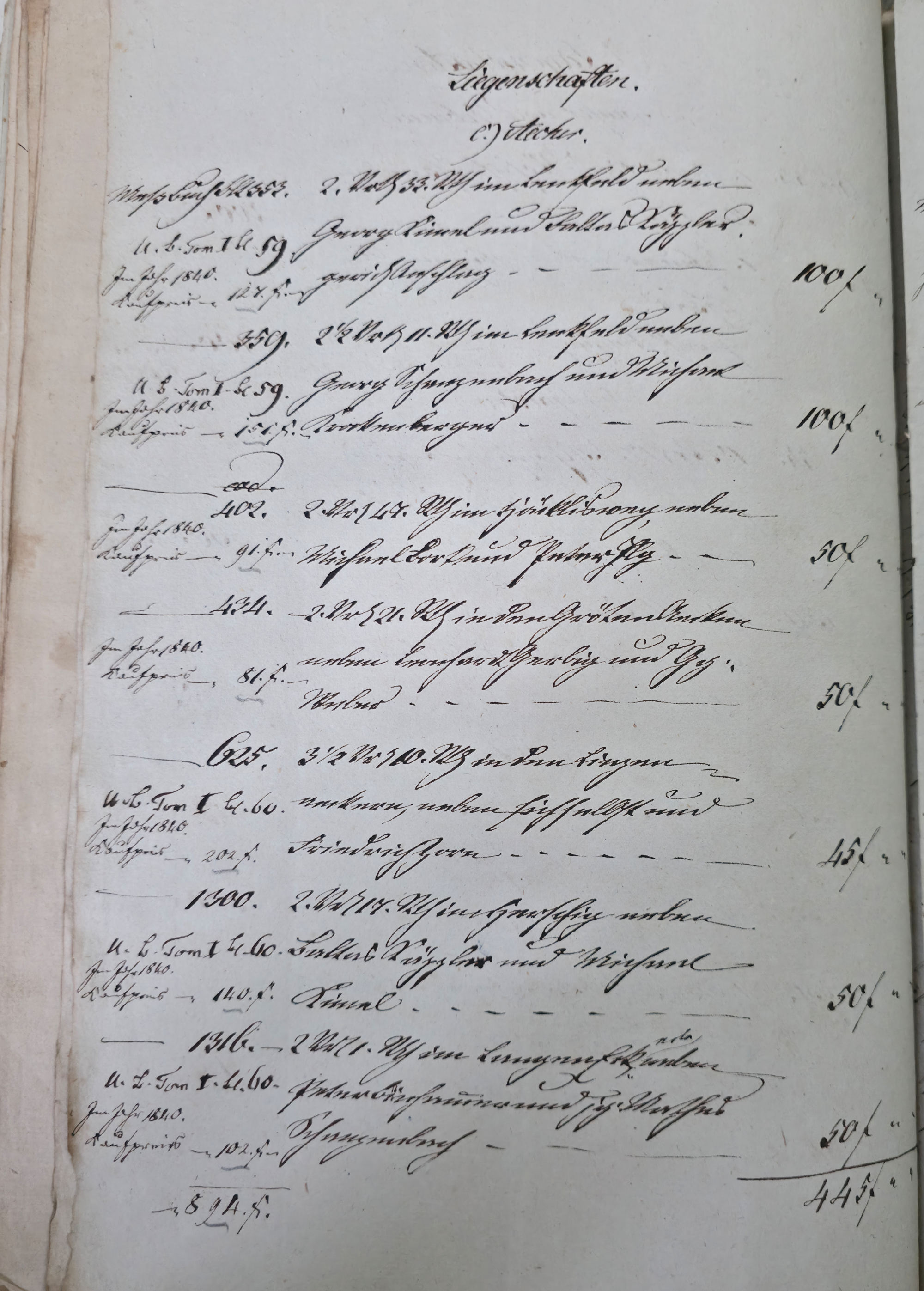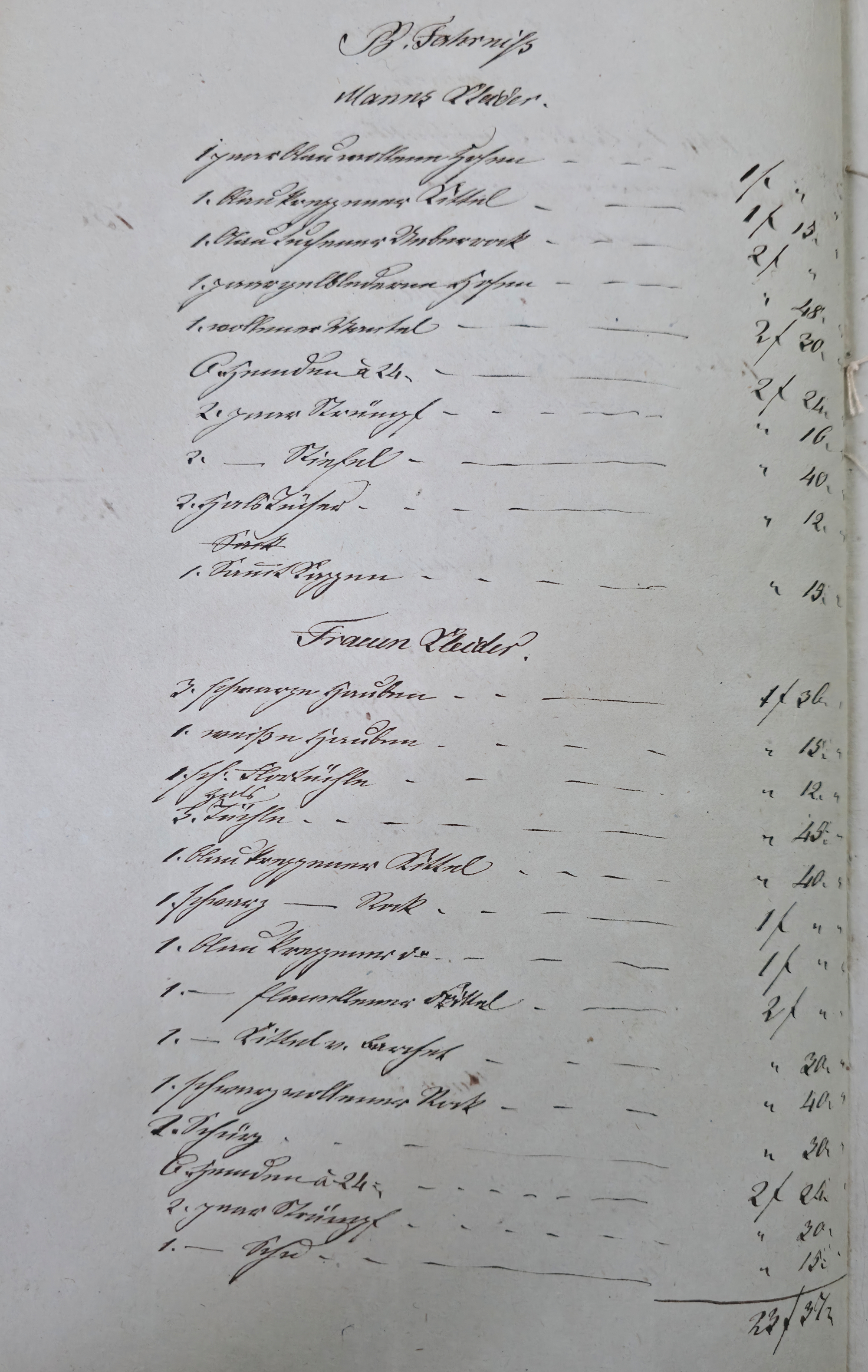 In dieser Eventualteilung vom 28.04.1836 / 02.01.1837 findet sich das folgende: Die gesetzlichen Erben sind: I. Die Wittwe Christina Catharina eine geborene Häffele II. ein mit dem Verstorbenen erzeugtes Kind, Georg Adam 7. Jahre alt Für das minderjährige kind wurde Mathes Kraft als Pfleger verpflichtet. A. Liegenschaften a) Häußer und Gebäude Meßbuch No 44. 1 einstockiges Wohnhauß neben Peter Ilg 200 fl. 1 Scheuer neben obigem Anstößer 100 fl. b) Gärten 38 fl. c) Aecker 1.865 fl. d) Wiesen 110 fl. e) Weinberge 400 fl. f) Wald 60 fl. Summe Liegenschaften 3.773 fl. B. Fahrniß Baar Geld 0 fl. Bücher 1. Gesang buch 15 x. 1. Predigtbuch 30 x. Manns Kleider 13 fl. 12 x. Frauen Kleider 12 fl. 17 x. Bett Gewand 25 fl. Leinwand 12 fl. 54 x. Küchen Geschirr von Messing 1 fl. von Zinn 30 x. von Kupfer 24 x. von Eisen 10 x. von Blech 12 x. von Glas 14 x. von porzellan 6 x. Irdenes Geschirr 15 x. Schreinwerk 5 fl. 4 x. Faß und Bandgeschirr 3 fl. 50 x. Allerlei Hausrath 4 fl. 7 x. Feld und Handgeschirr 4 fl. 19 x. Getränk 0 fl. Vieh 1 Kuh 33 fl. 2 Räupling 30 fl. 1 Gans 30 x. 2 Hühner 18 x. Fahr und Bauren geschirr 1 Wagen samt Zugschirr 25 fl. 1 Pflug u Eggen 3 fl. Früchten 5 Scheffel Dinkel 15 fl. 1 Scheffel Korn 5 fl. 1 1/2 Scheffel Gersten 6 fl. Activa 0 fl. Summe des gemeinschaftlichen Vermögens 2.975 fl. 7 x. Schulden 563 fl. 30 x. Unter Abzug der Schulden besteht das reine Vermögen anhin 2.411 fl. 37 x. Es zeigt sich mithin einen eheliche Errungenschaft von 823 fl. 44 x. Hiervon gebührt jedem Ehegatten die Hälfte mit 411 fl. 52 x. Die Verlassenschaft des Verstorbenen besteht also: a) in einem Beibringen mit 733 fl. 29x. b) in der Hälftigen Errungenschaft mit 411 fl. 52 x. Zusammen in 1.145 fl. 21 x. Hiervon trifft es: I. die Wittwe mit 381 fl. 47 . II. dem Sohn Georg Adam a 2/3 763 fl. 34 x. Es haben also zu fordern: I. die Wittwe a) Beibringen 854 fl. 24 x. b) hälftigen Errungenschaft 411 fl. 52 x. c) Erbs Portion 381 fl. 47 x. II. der Sohn Georg Adam Brand Erbs Portion 763 fl. 3 x. Sämtliche Liegenschaften wurden während der Ehe erworben, und sind gerichtlich angeschlagen zu 2.773 fl. Wovon zunächst der Ehefrau die Hälfte gebührt mit 1.386 fl. 30 x. dann 1/3 an der anderen Hälfte mit 462 fl. 10 x. Der Sohn Georg Adam Brand ad 2/3 an der andern hälfte mit 924 fl. 20 x. Die Erbs Portion desselben trägt aber nur 763 fl. 34 x. Es folgen weitere Aufzählungen