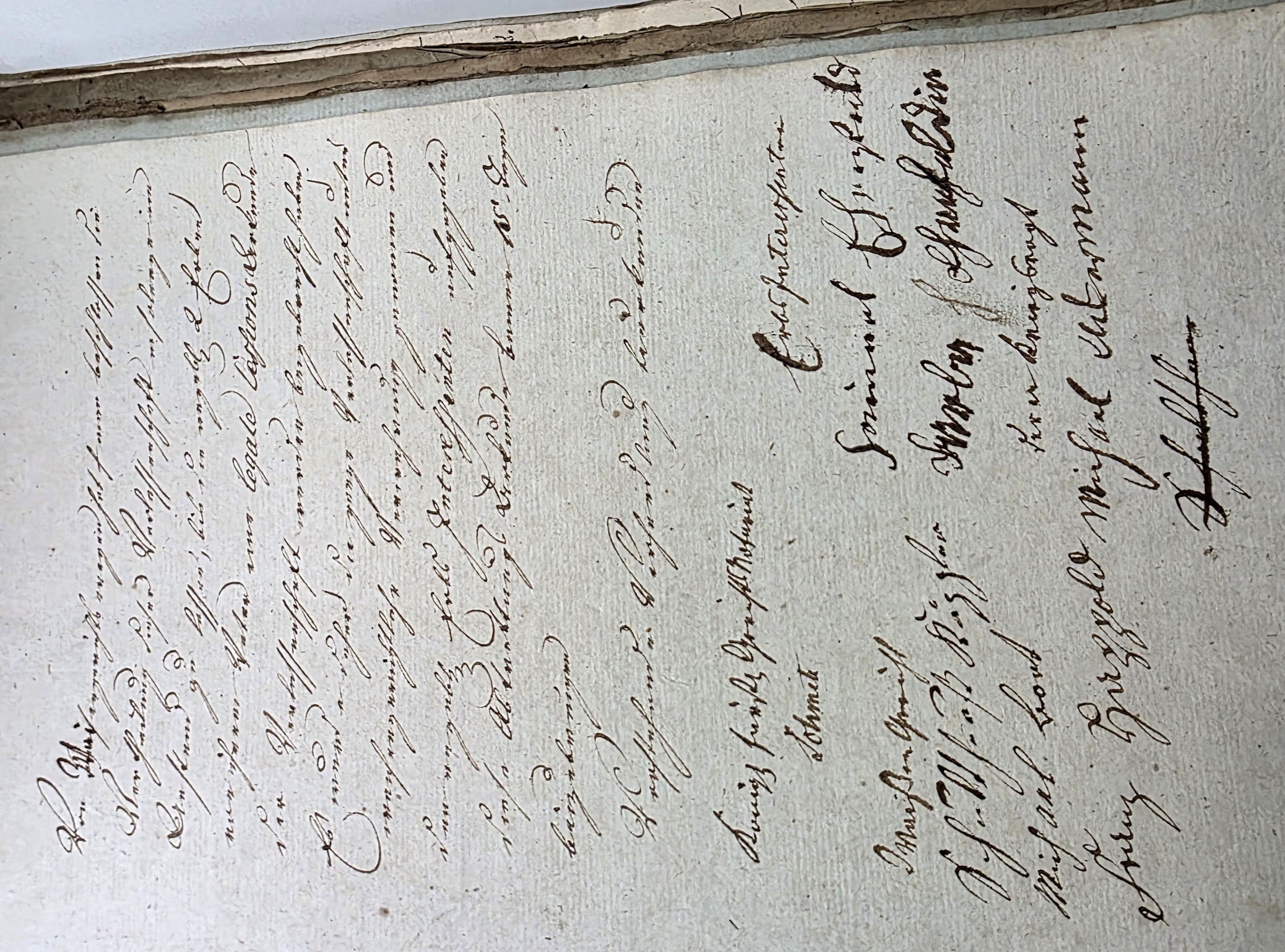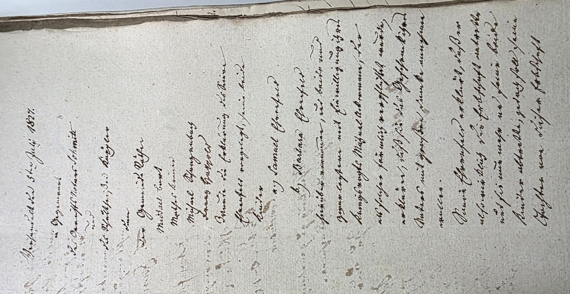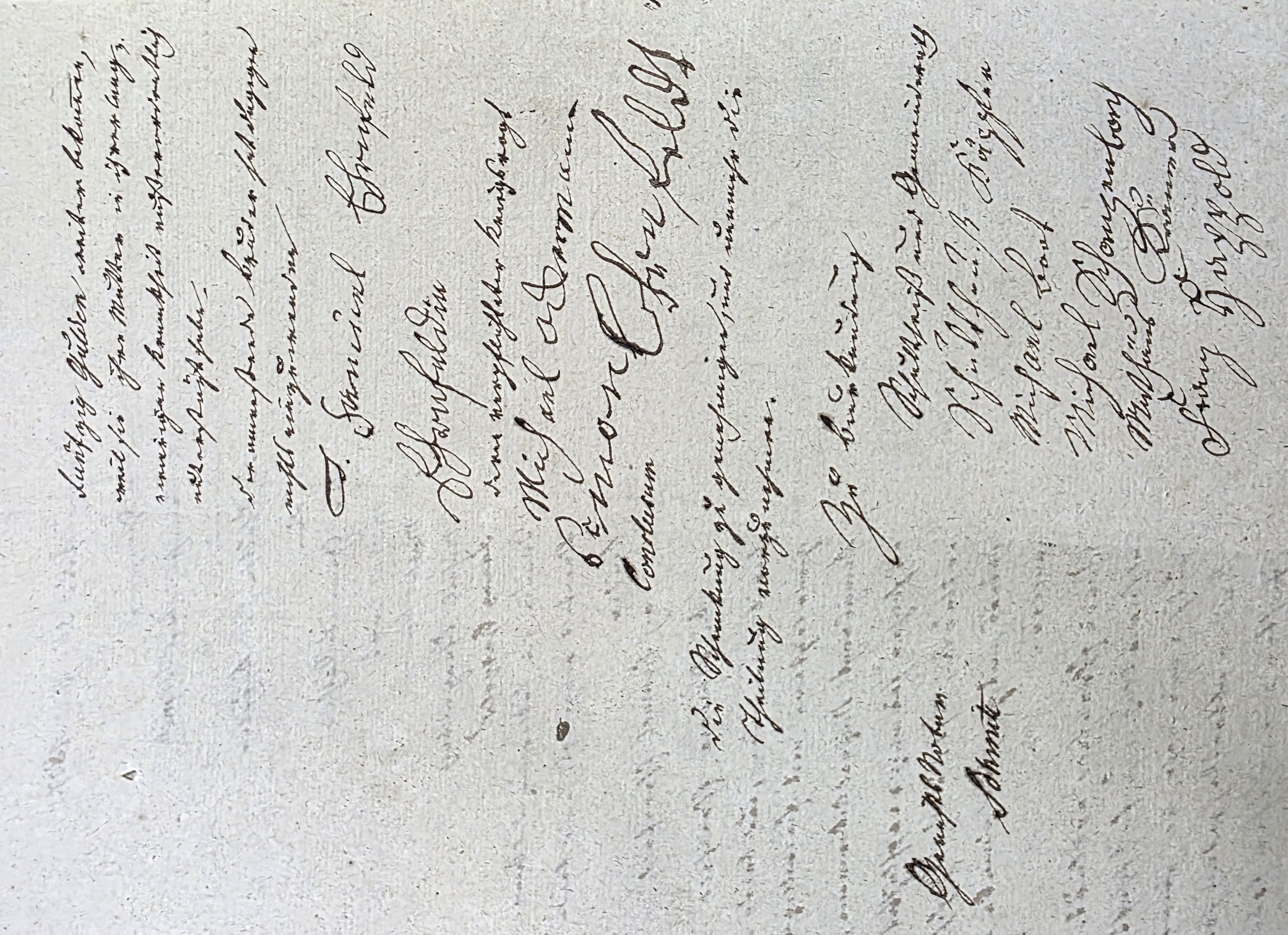 In diesem Verlaßenschafts Inventur und Realteilung vom 07.06.1827 findet sich das folgende: Die gesetzlichen Erben sind: Simon Ehrenfeld Bürgerl. Inwohner zu J....berg, Königlichem Oberamts Gerichts Künzelsau, Bruder der Verstorbenen dessen zwey leibliche Kinder a) Samuel Ehrenfeld Dienstknecht bey Schultheiß Käppler dahier 38 Jahre alt. b) Barbara Ehrenfeld dermalen im Dinsten bey Adlerwirth ... zu Niederstetten Oberamts Gerabronn, 36 Jahre alt. Erklären aber daß ihr Vater ihnen diese Verlassenschaft abgetretten haben und daß sie ohne Verzug deßfals eine .... Urkunde beibringen würden. Der Nachlass von Maria Dorothea Ehrenfeld bestand u.a. aus: A Liegenschaften 1) Häuser und Gebäude 1 kleines einstöckiges baufälliges Häuslein 35 fl. [Haus 10a] Nachtrag links: zur Hälfte Friedrich Samuel Ehrenfeld zur Hälfte Barbara Ehrenfeld B. Fahris baares Geld 205 fl. 49 x. Bücher - Bibel 24 x. - Predigtbuch 24 x. - Predigtbuch 24 x. - Württemb. Gesangbuch 15 x. - 10 alte Bücher 20 x. Weibs Kleider 1 fl. 32 x. Bettgewandt 17 fl. 30 x. Leinwandt 6 fl. 03 x. Mößinggeschirr 40 x. Kupfer Geschirr 1 fl. Zurgeschirr 1 fl. 18 x. Eisenbäckergeschirr 18 x. Schreinwerk 1 fl. 42 x. Gemeiner Hausrat 42 x. Summe Fahrniß 238 fl. 21 x. Activis 109 fl. 59 x. Schulden 14 fl. 16 x. Rest des Vermögens 369 fl. 4 x. "Nachdem unterm 5ten July d.J. einfür ... Schenkungs Urkunde beigebracht wurde, nach dieser aber Barbara Ehrenfeld - Fünfzig Gulden voraus als Entschädigung für Unterstützung ihrer Mutter in ihrer langwierigen Krankheit erhalten soll; So erhalten von der Verlaßenschaft 369 fl. 4 x. 1. Samuel Ehrenfeld 159 fl. 32 x. 2. Barbara Ehrenfeld 159 fl. 32 x. und 50 fl."