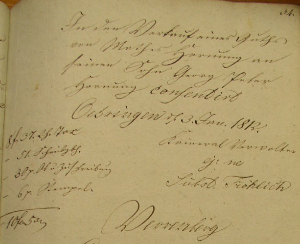 Im Öhringer Intelligenz Blatt von 1844 steht, dass die Liegenschaften des Schreiner Albrecht Röthenmayer auf dem Zwangswege verkauft werden sollte. Er war wohl in Gant geraten - er war pleite. Der erste Verkaufstermin war auf den 15.06.1844, der zweite auf den 26.07.1844 festgelegt. Kam es zum Verkauf? Es wurde aber in einer ersten Durchsicht kein Eintrag im Kaufbuch gefunden. Wo lebte die Familie Albrecht Rettenmaier von da an?
