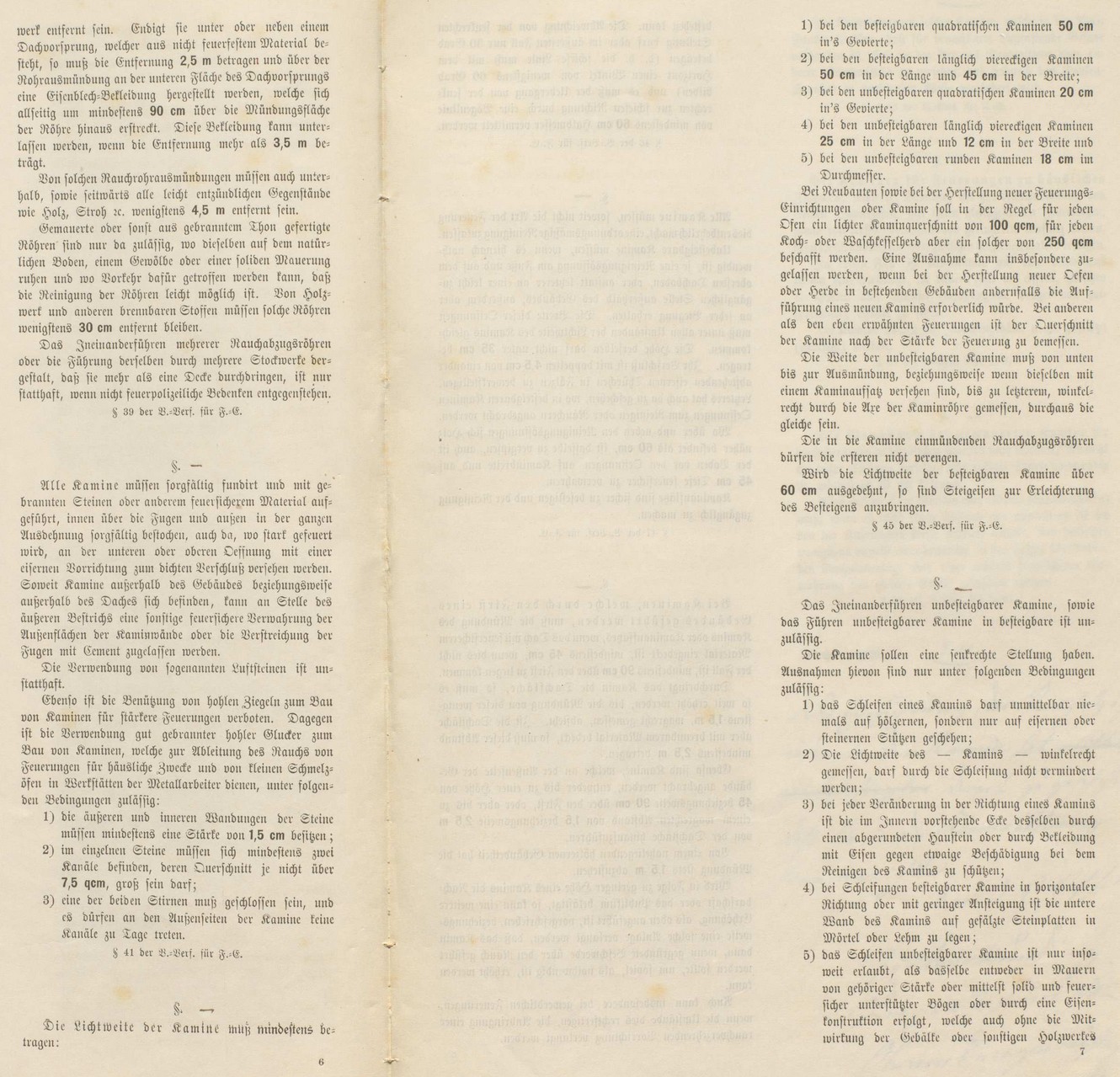 | Lage; Bestimmung; Bauart; Zahl der Stockwerke | Länge, Breite, Höhe in Metern | Gelaße | Dachdeckung | Umfassungs- und Giebelwände | Feuergefährliche Einrichtungen und Klassenbegründung | |||||||||||