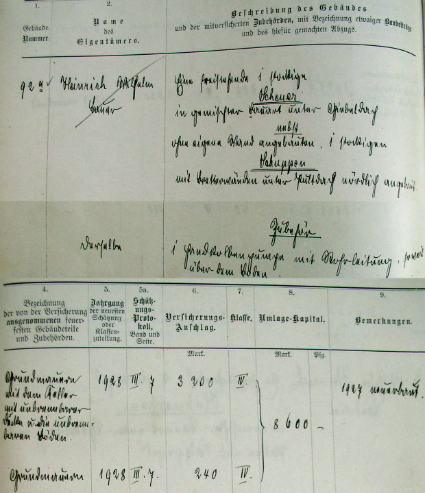 Eintrag im Feuerversicherungsbuch zum Haus No 92