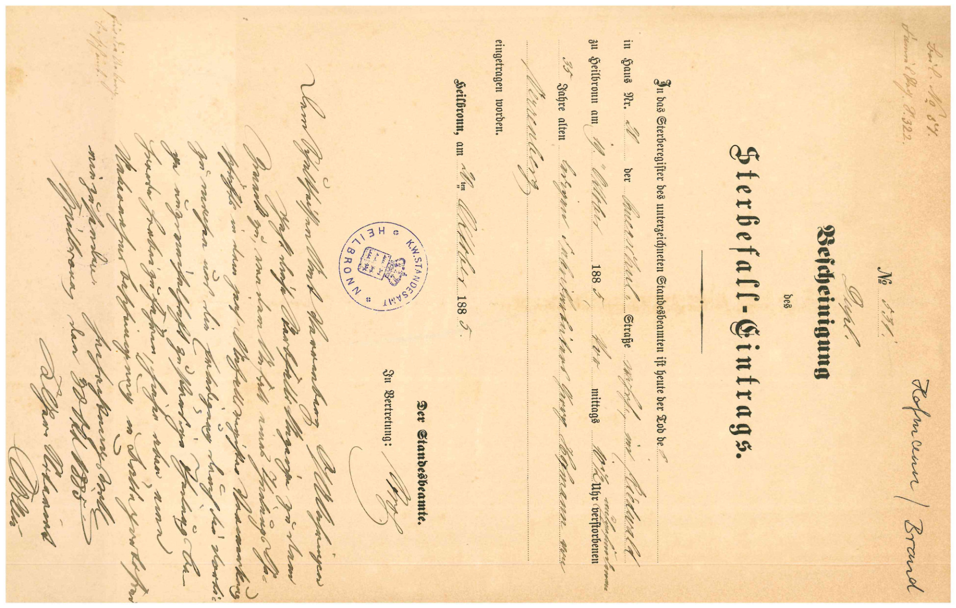 | Bescheinigung im Sterbefall-Eintrag des Standesamtes Heilbronn |