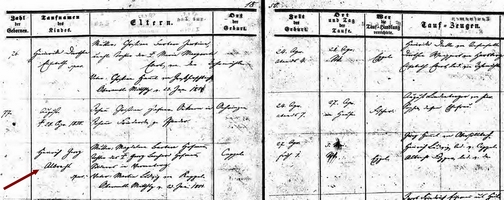 In diesem Eintrag im Öhringer kirchl. Geburtsregister findet sich das folgende:
