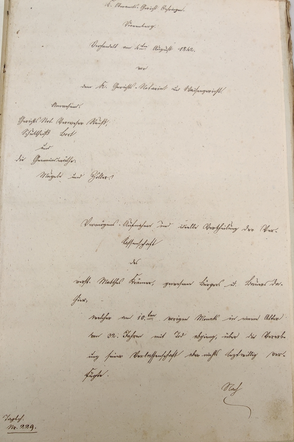 | Eventual Theilung des verst. Georg Matthäus Krämer - 1842 |