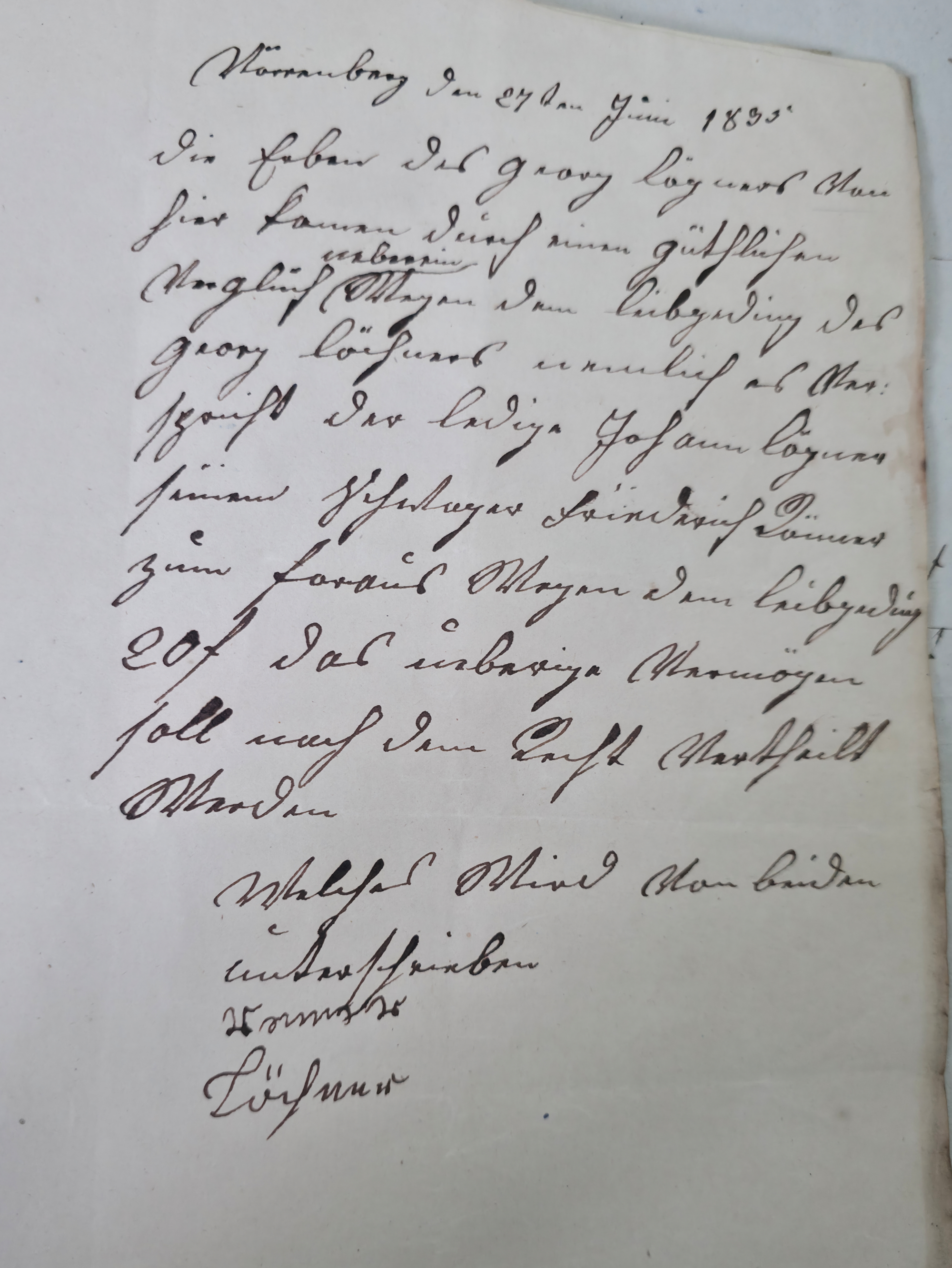 Im Verrenberger Gemeinderatsprotokoll vom 10.Juni 1834 findet sich folgendes: Es erschien Johann Georg Lögner und bringt bei dem gemeinde Rath vor das er sich entschlosen habe sich in Rapbach oberamts Weinsberg bürgerlich nieder zu lassen und bittet um ausfärtigen eines geburts brief da wurde ihm ein geburtsbrief ausgestelt von 400f. 200f. bahr 200f. nach des Vatters Todt |