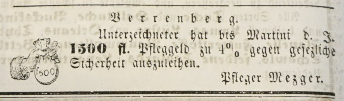 | Christian Metzger hat 1600fl. Pfleggeld zum Verleihen - 1862 |