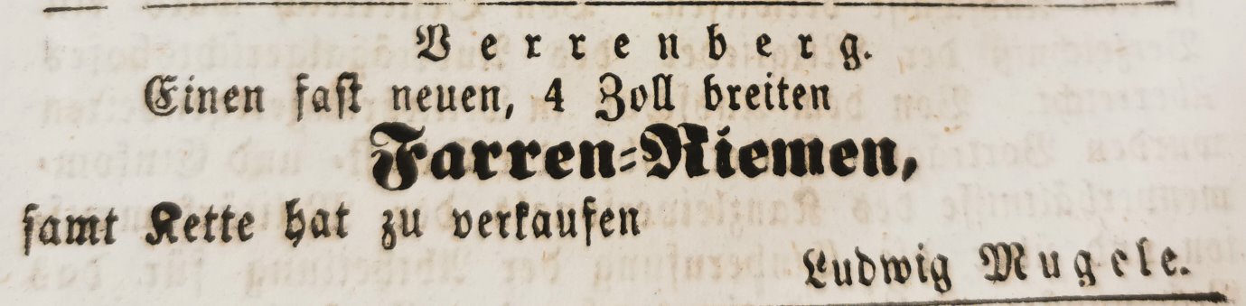 1854 wird Johann Georg Ludwig Mugele mit 3 der insgesamt 120 Anteilen der Schäferei Gerechtsamen in Verrenberg aufgelistet. Man sieht, dass die Anzahl der Anteile seit 1801 unverändert ist. Diese Anteile sollen auf das Haus, den Hof gebunden sein. |