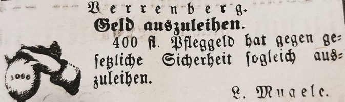 Im Verrenberger Gemeinderatsprotokoll vom 26.April 1856 liest sich das so: Es erschien Ludwig Mugele Sohn des res. Schultheiß Johann Mugele von hier und bittet um Erlaubniß seiner Verlobten Rosina geb. Hüttinger v. Lehrsteinsfeld Oamts Weinsberg in das hies. Bürgerrecht aufzunehmen. Deren Gesuch hinterlegt er einen Geburtsbrief des Gemeinderaths Lehrnsteinsfeld vor wornach sie ein gutes Prädikat und an Vermögen 2000f. Zeitausend Gulden besizt. Der Gemeinderath und Bürgerausschuß huldigt der Ansicht das der Nahrungsstand gesichert ist weshalb beide Collegien beschliesen Der Bittstellerin das hiesige Ortsbürgerrecht zu verleihen und den Verlobten anzusezen für die Braut Bürgerannahme Gebühr 5f. dem Bräutigam Nachtwachsorugat 6f. für Feieraimer und Obstbäume 2f. 42x. Gemeinderaths Sportele 1f.30x. Waisenhausgebühr 1f. Aufwärter 6x. zusammen 16f. 18x. |