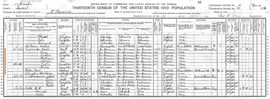 (3) In dieser US-Volkszählung von 1910 sind Karl Johann Reber und seine Oma Caroline Barbara Schäfer geb. Scheck im Staat Nebraska, County Seward, "Hausnummer" 231 gelistet