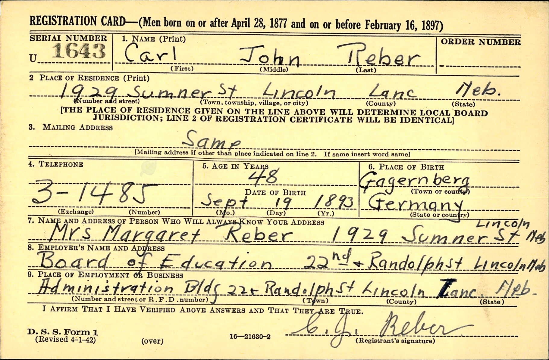 19.09.1893 Gagernberg (Beilstein) - 13.10.1962 Lincoln, Lancaster, Nebraska, USA
