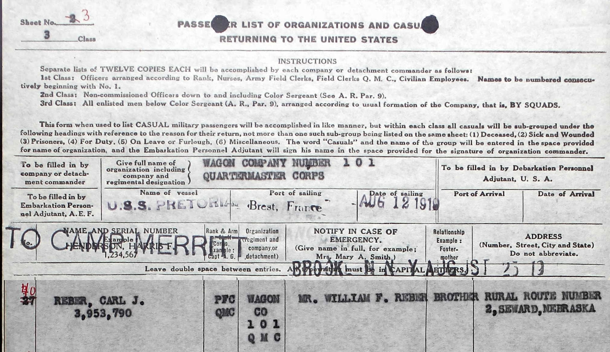 Der für uns wichtige Passagier war Carl J. Reber. Nutzte er einen eigentlich militärischen Transport, um wieder in die USA zu kommen?