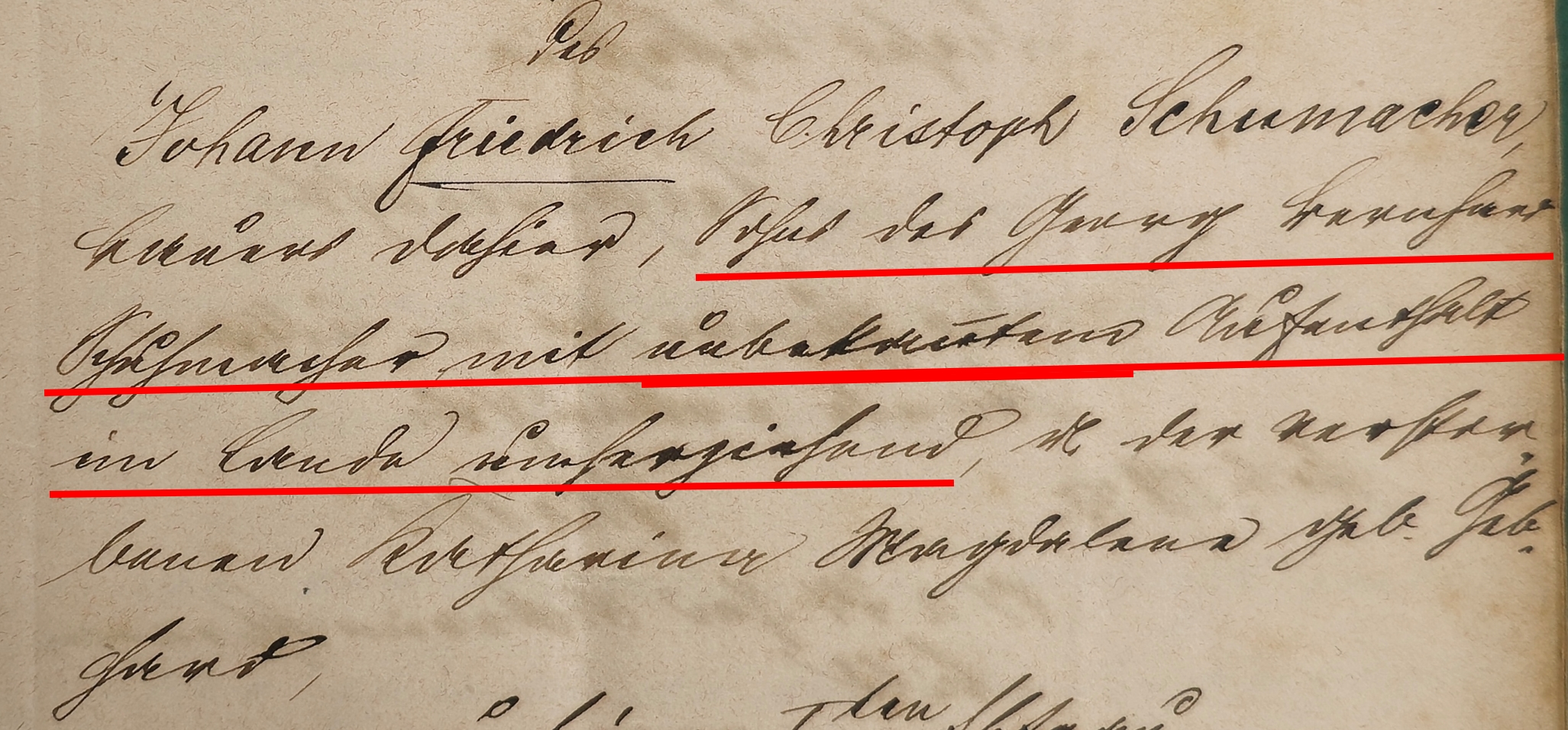"Johann Friedrich Christoph Schumacher, Bauer dahier, Sohn des Georg Bernhard Schumacher