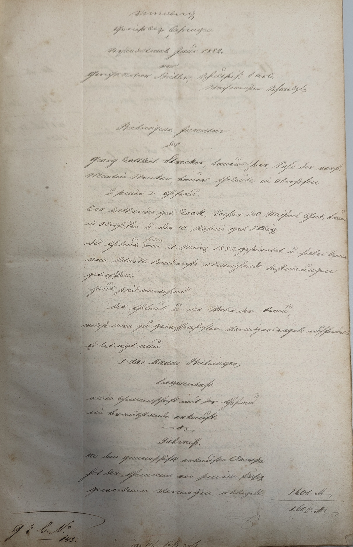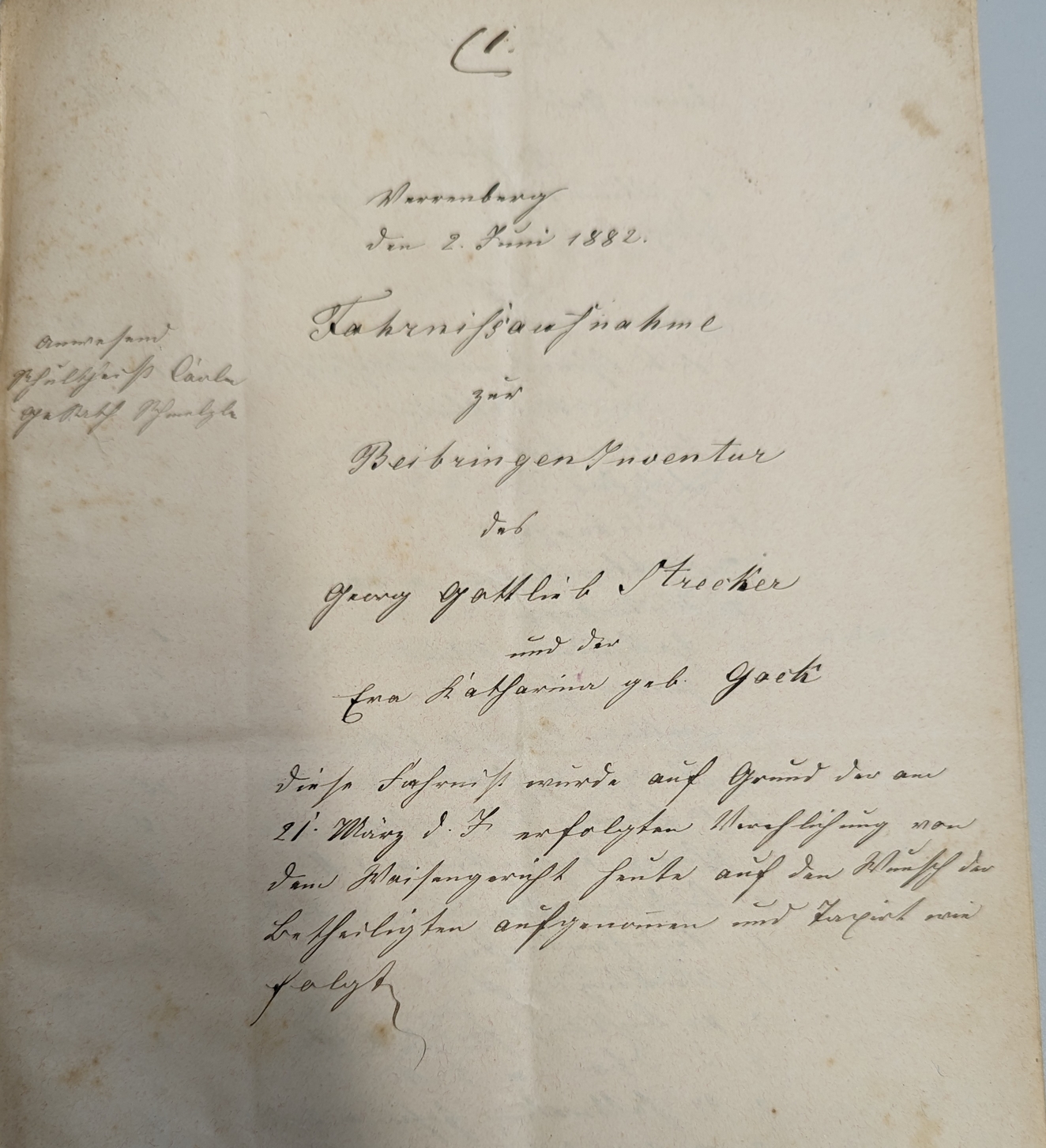 Im Verrenberger Gemeinderatsprotokoll vom 02.Oktober 1899 findet sich folgendes: Dem Gottlieb Strecker wurde nachstehendes Vermögenszeugnis ausgestellt Vermögen an Gebäude und Liegenschaft 8000M Fahrnis 2000M Schulten unversicherte nach Angabe 600M Leumund mittel gut |