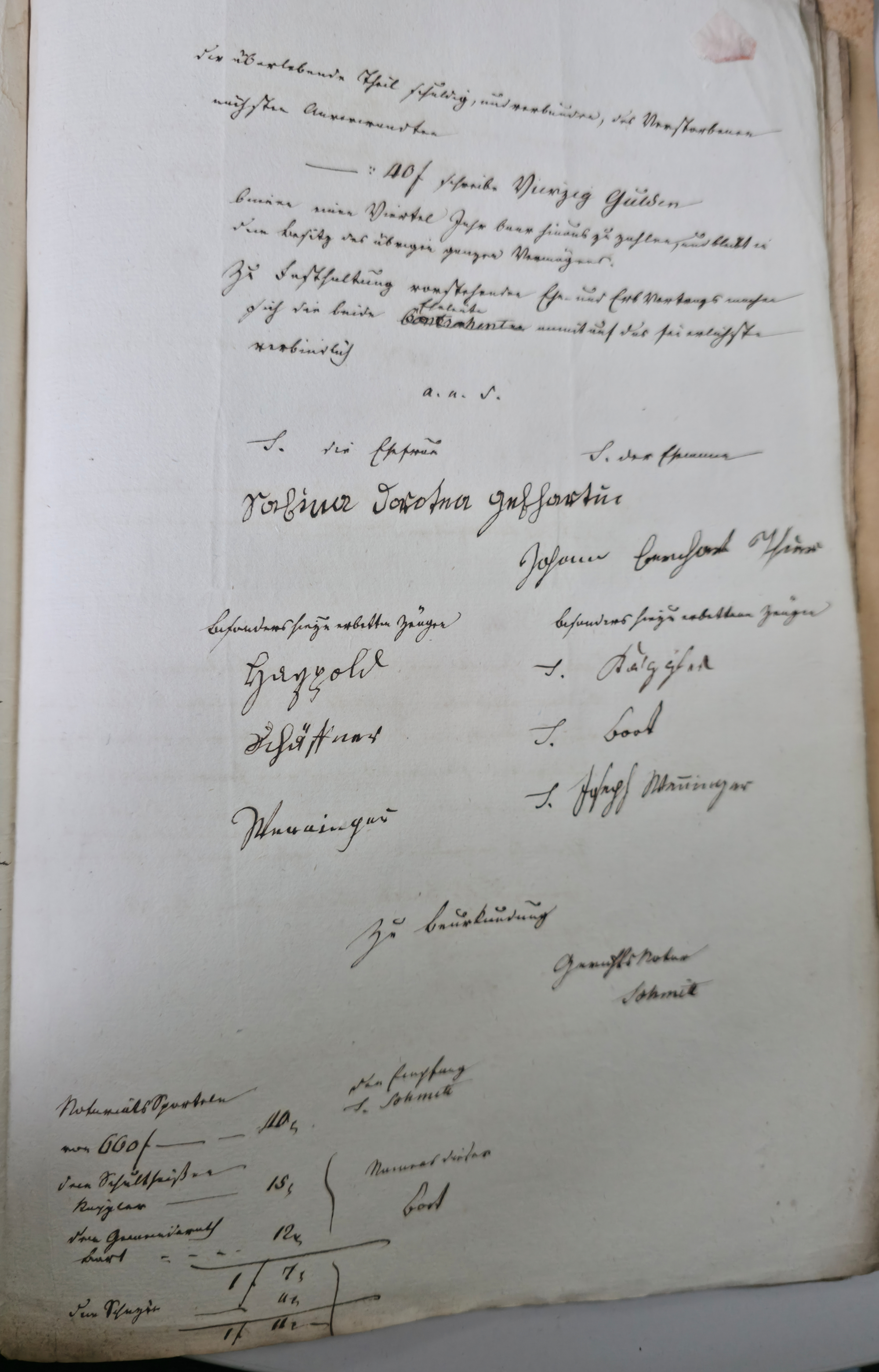 Würden aber keine Kinder aus dieser Ehe erzeugt, so ist der überlebende Theil schuldig und verbindlich, des Verstorbenen nächsten Anverwandten 40 fl. binnen einem viertel Jahr baar hinaus zu zahlen und bleibt