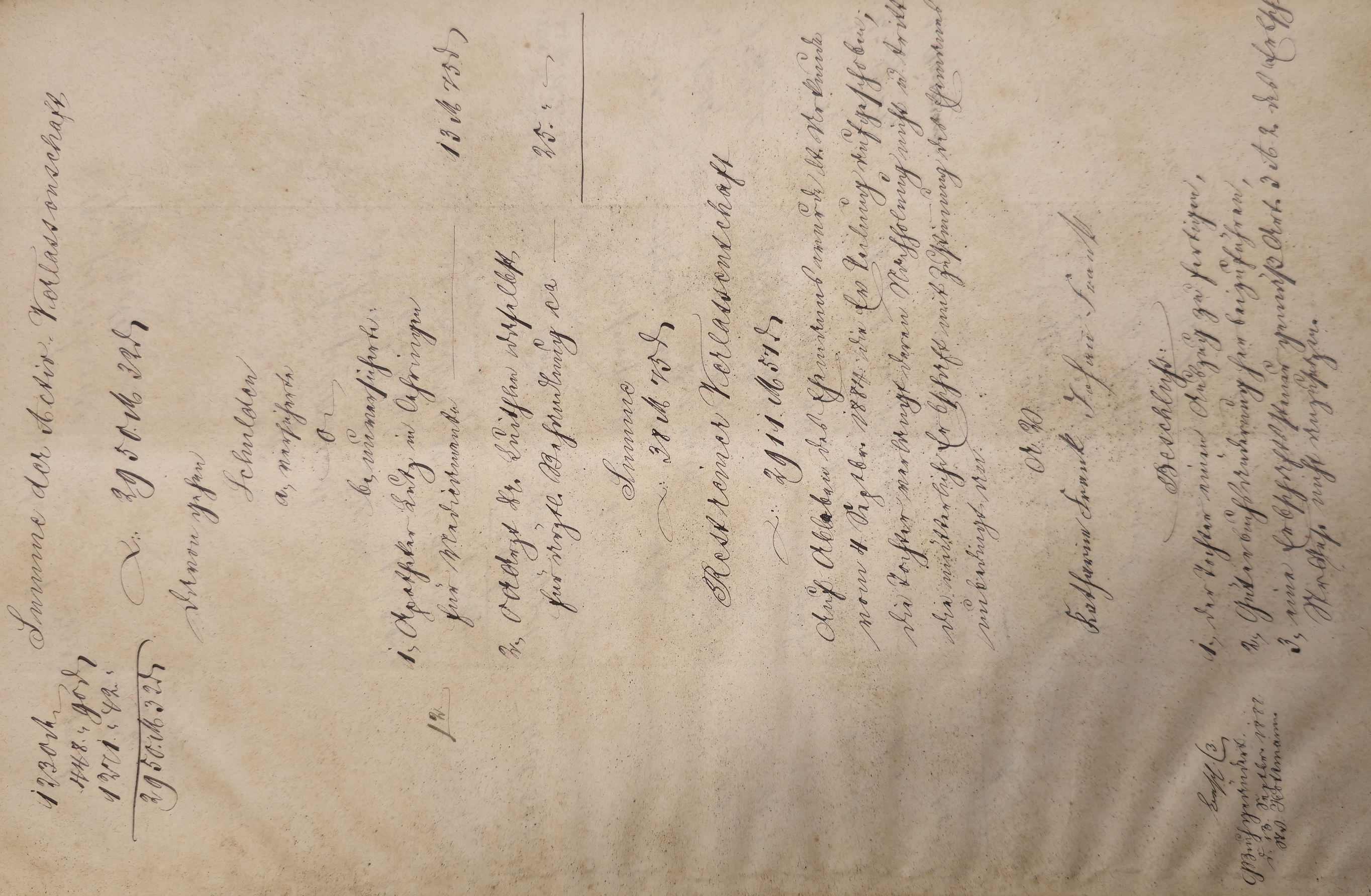 In dieser Zuweisung des Nachlasses vom 19.06.1888 findet sich das folgende: Liegenschaft: Keller unter Gebäude No.18 2 Äcker Summe 1230 M Fahrniß 448 M. 90 d. Forderungen 1271 M. 42d. Summe der Activ Verlassenschaft 2.950 M. 32 d. Schulden 38 M. 75 d. Rest reiner Verlassenschaft 2.911 M. 57 d. In der Fahrniß sind die Bücher auffällig: - 1 Gesangbuch 1 M. - 1 Gebetbuch die Himmelsleiter 50 d. - 1 alte Bibel 10 d.