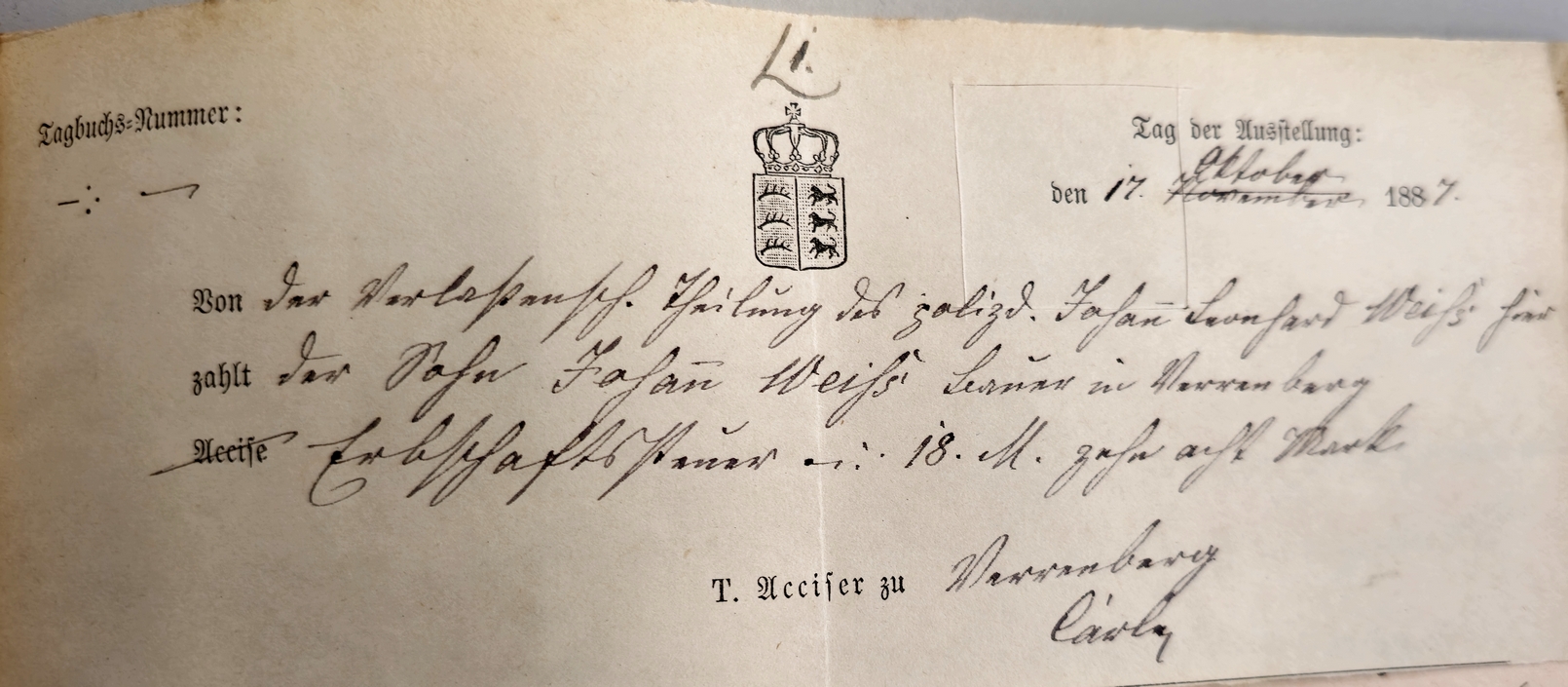 | Es scheint, dass Johann Leonhard Weiß zuvor in Schwäbisch Hall lebte, aber noch sein (angeborenes) Verrenberger Bürgerrecht hatte |