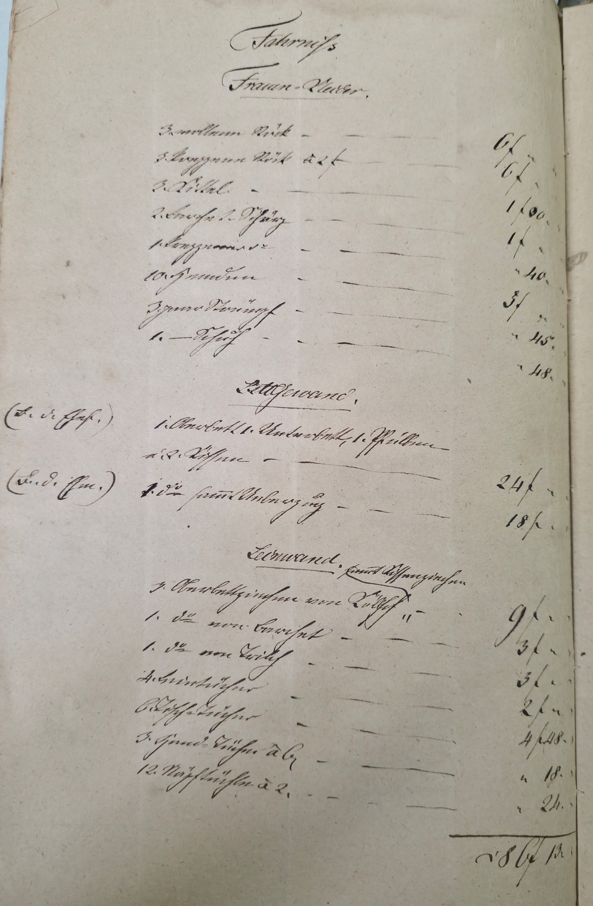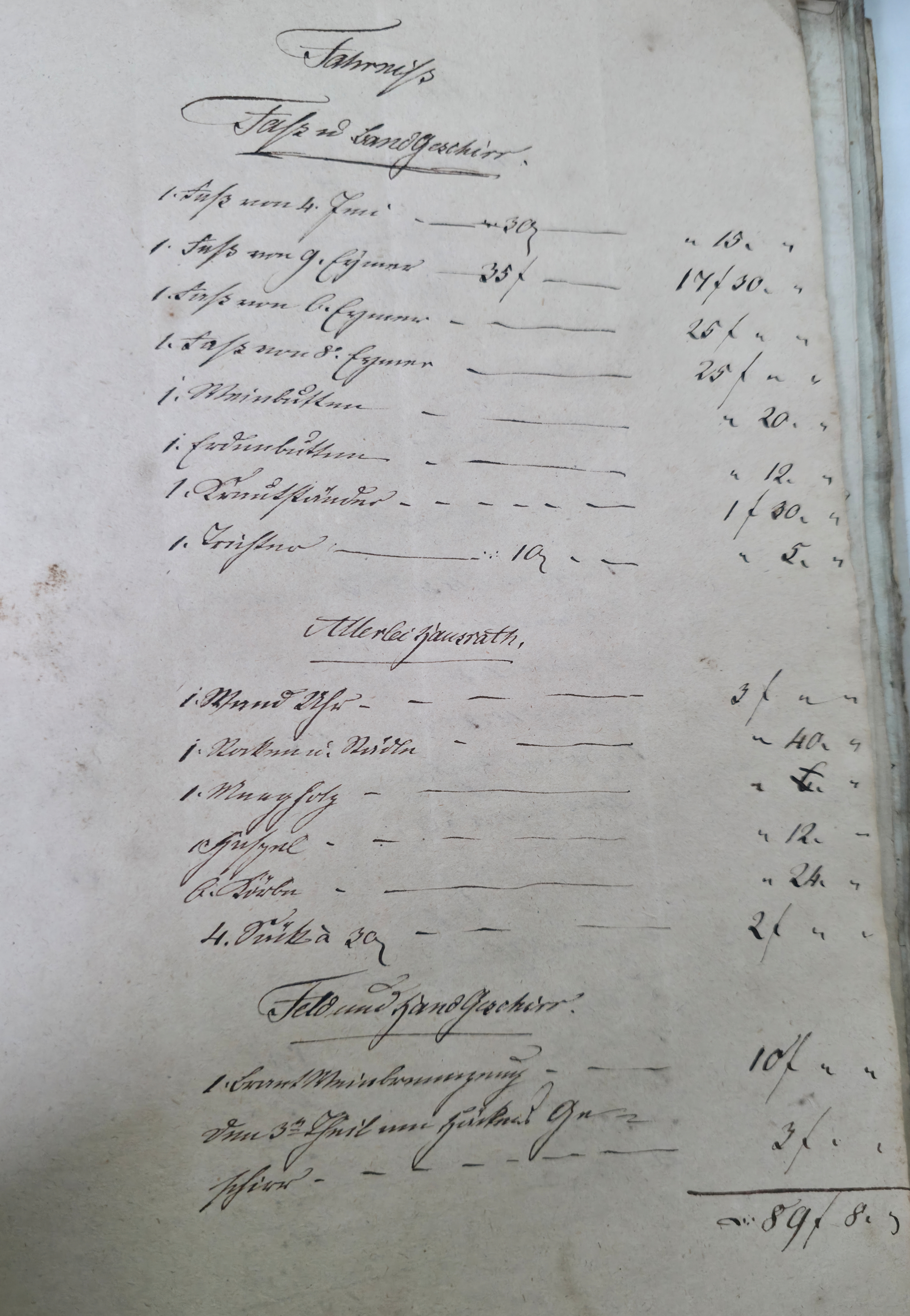 In dieser Beibringensinventur vom 20.06.1827 findet sich das folgende: