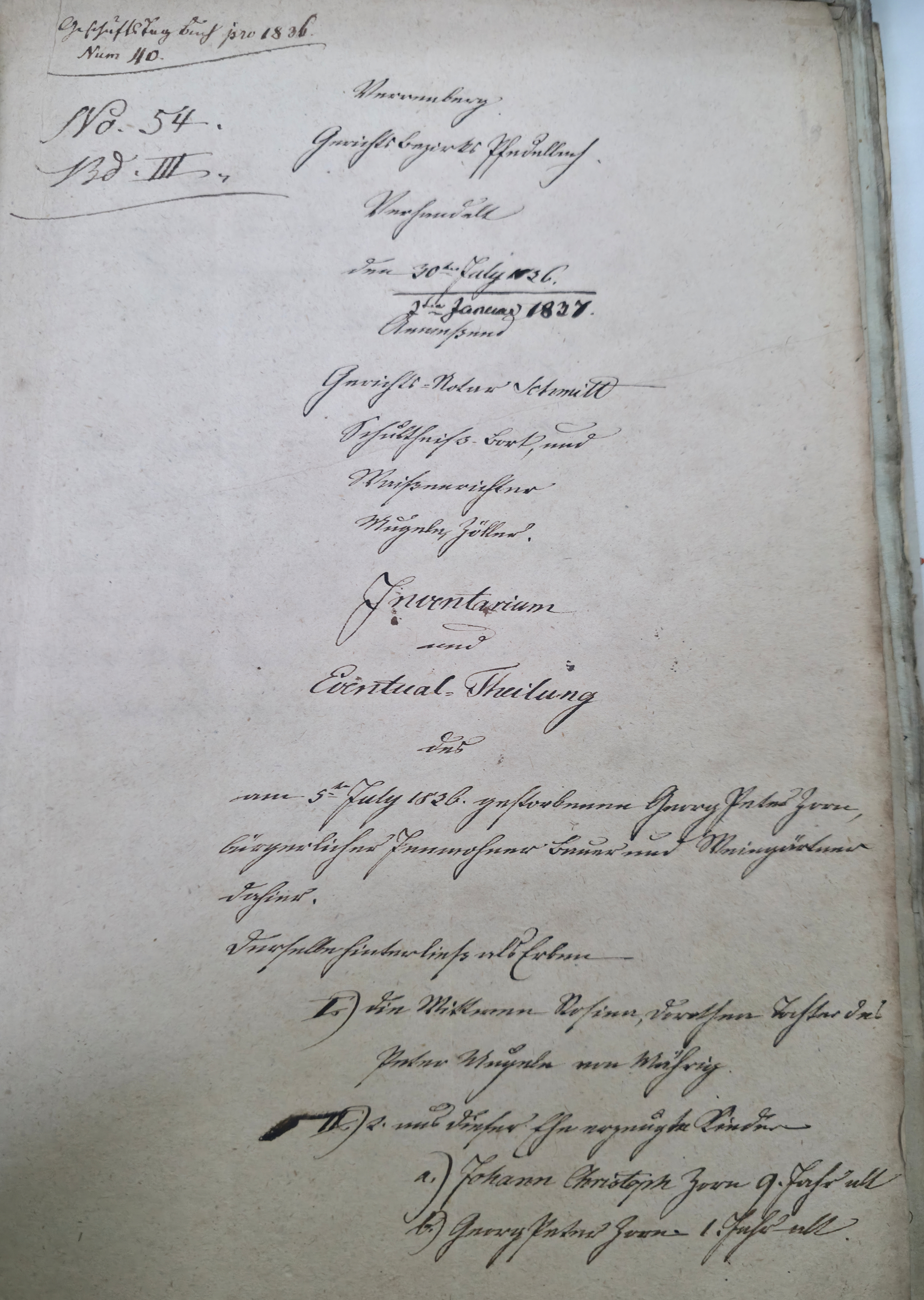 In dieser Eventualteilung vom 30.07.1836 findet sich das folgende: