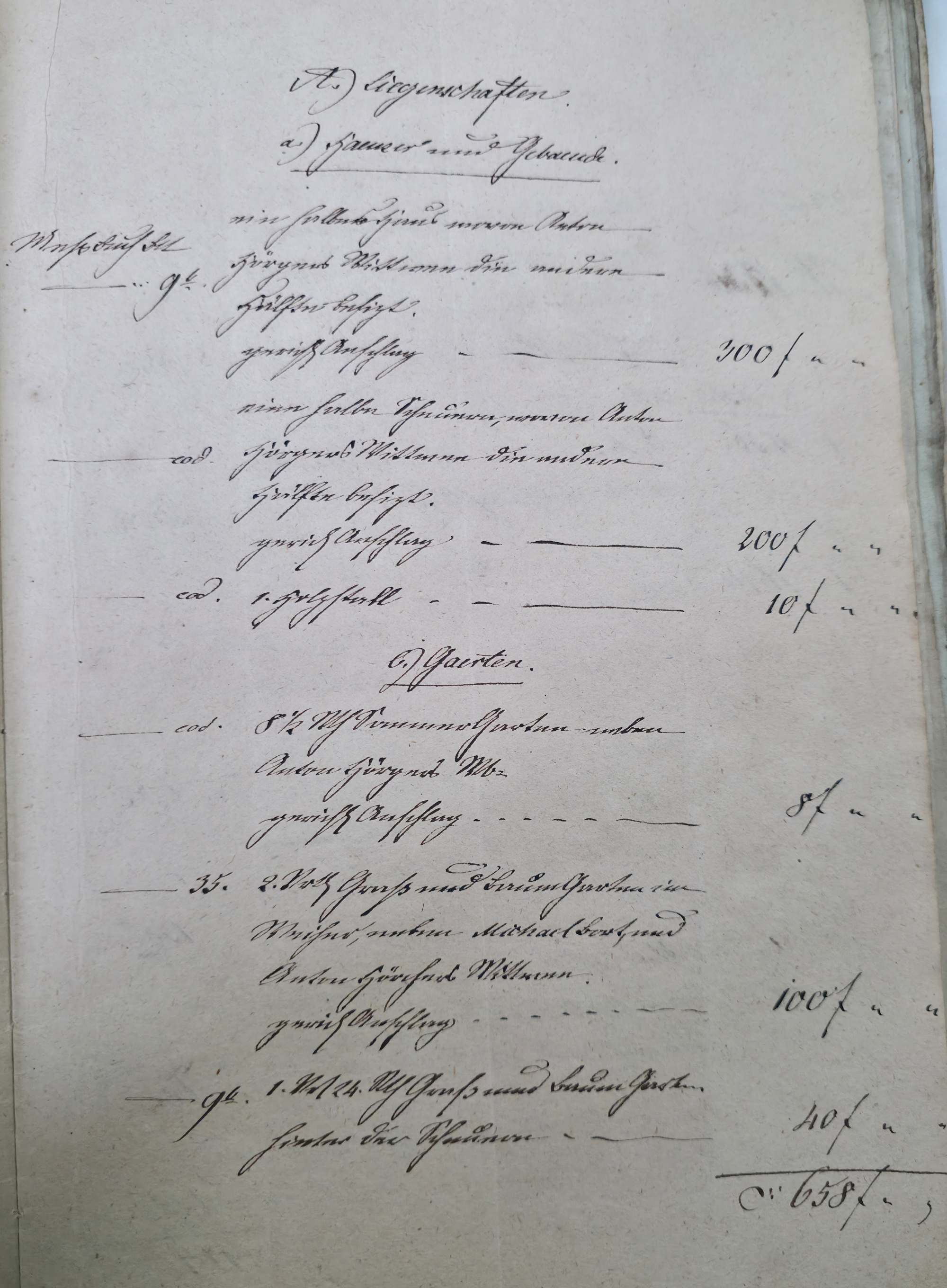 "Ueber Abzug der Schulden besteht ... Vermögen noch in 4.948 fl. 51 x.